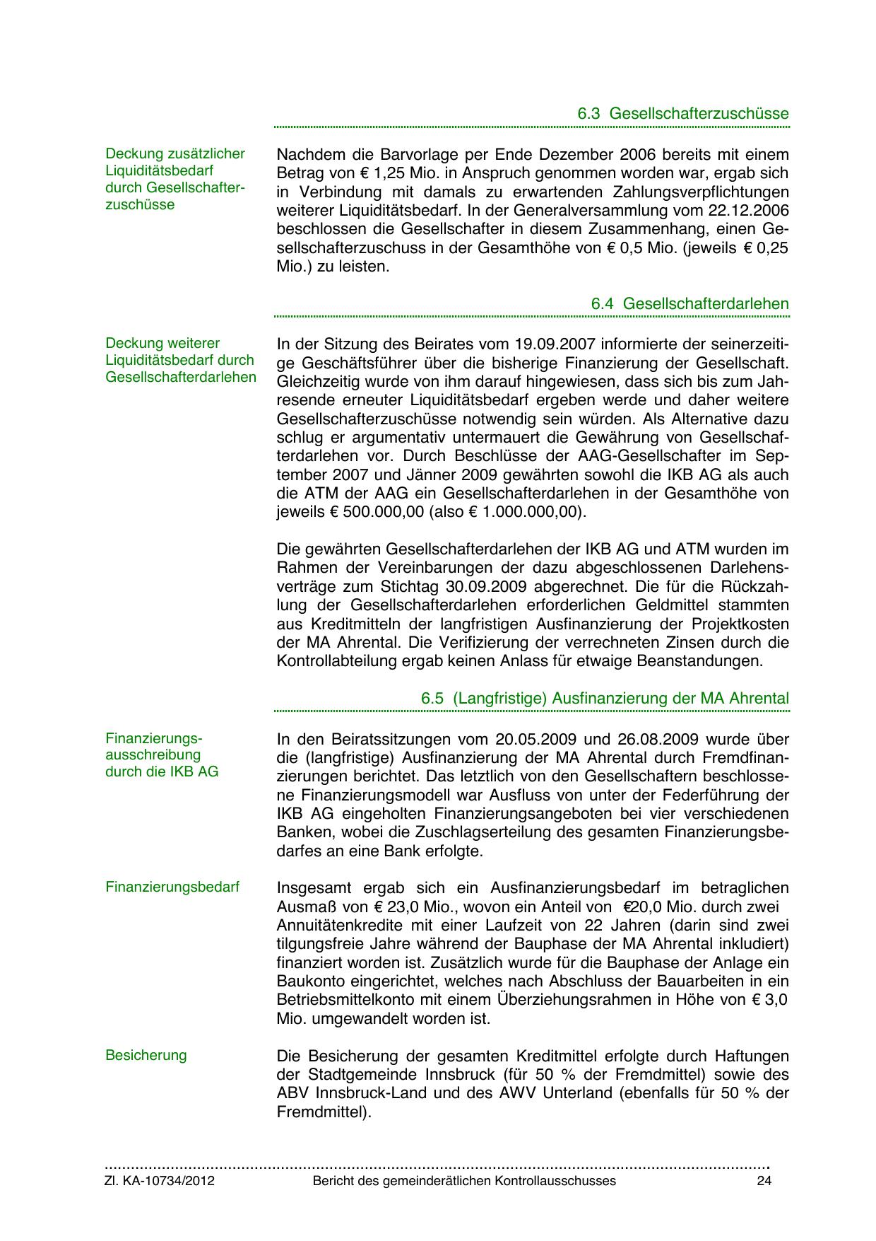 die (langfristige) Ausfinanzierung der MA Ahrental durch Fremdfinanzierungen berichtet. Das letztlich von den Gesellschaftern beschlossene Finanzierungsmodell war Ausfluss von unter der Federführung der