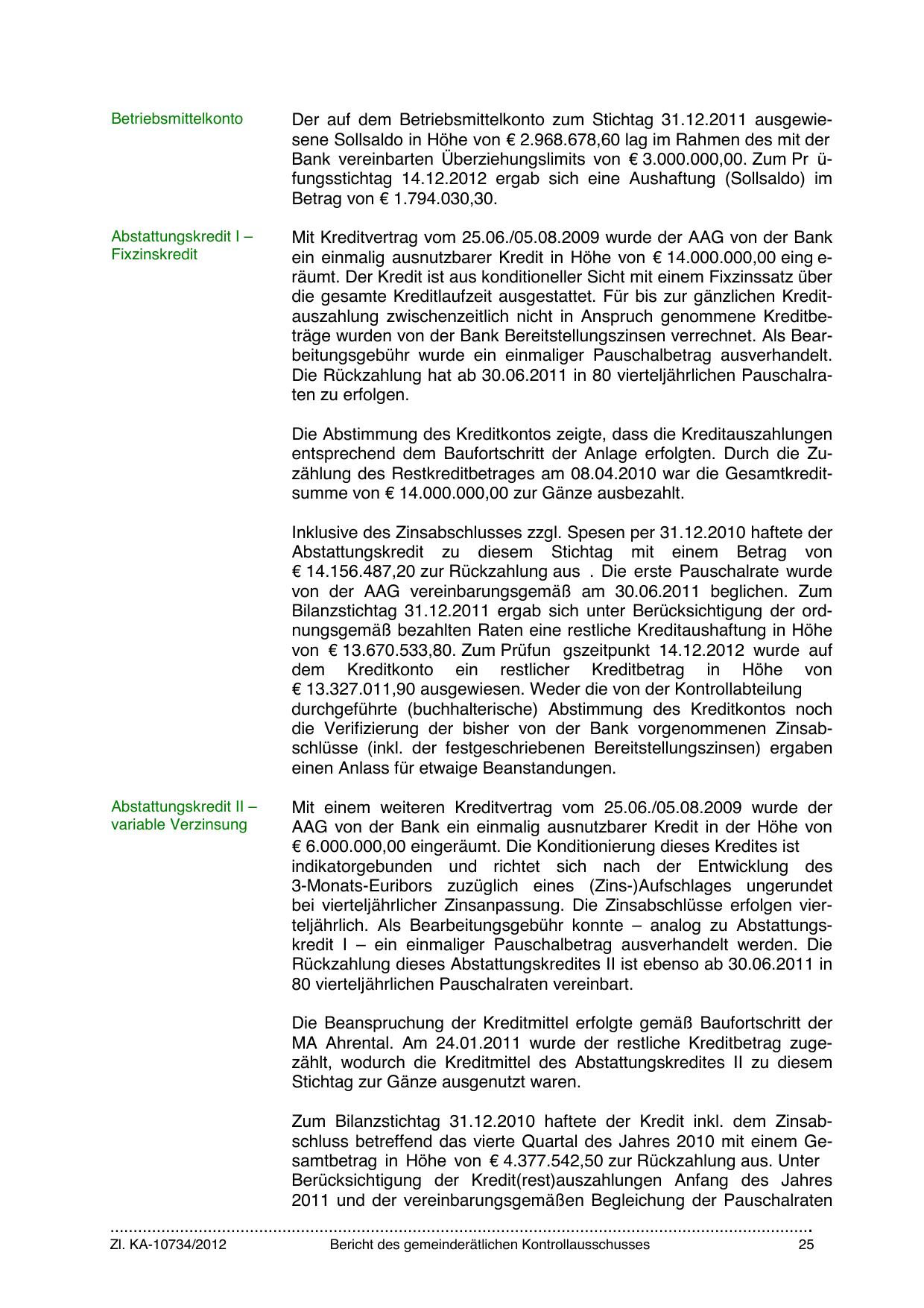 MA Ahrental. Am 24.01.2011 wurde der restliche Kreditbetrag zugezählt, wodurch die Kreditmittel des Abstattungskredites II zu diesem