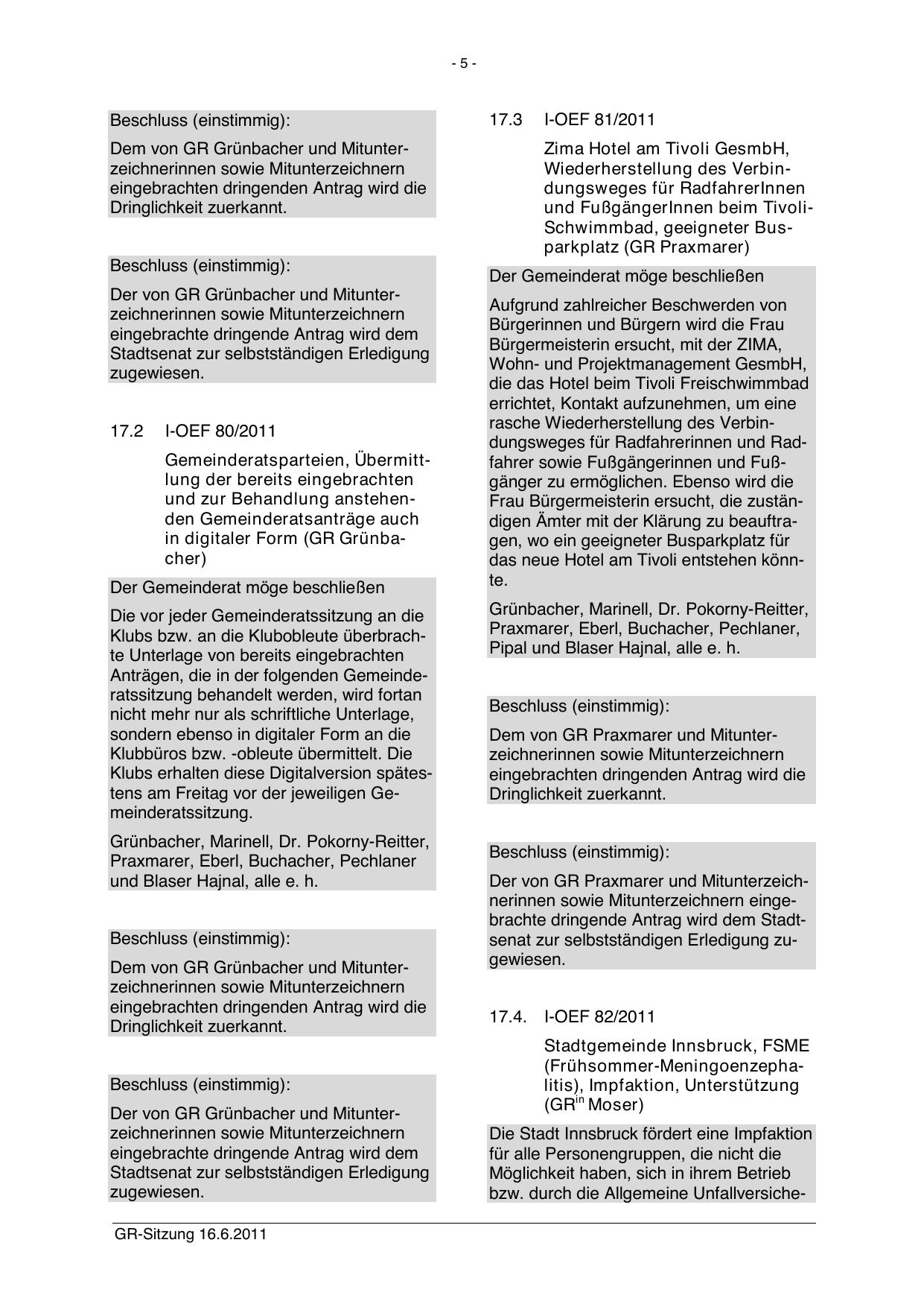 Dem von GR Praxmarer und Mitunterzeichnerinnen sowie Mitunterzeichnern