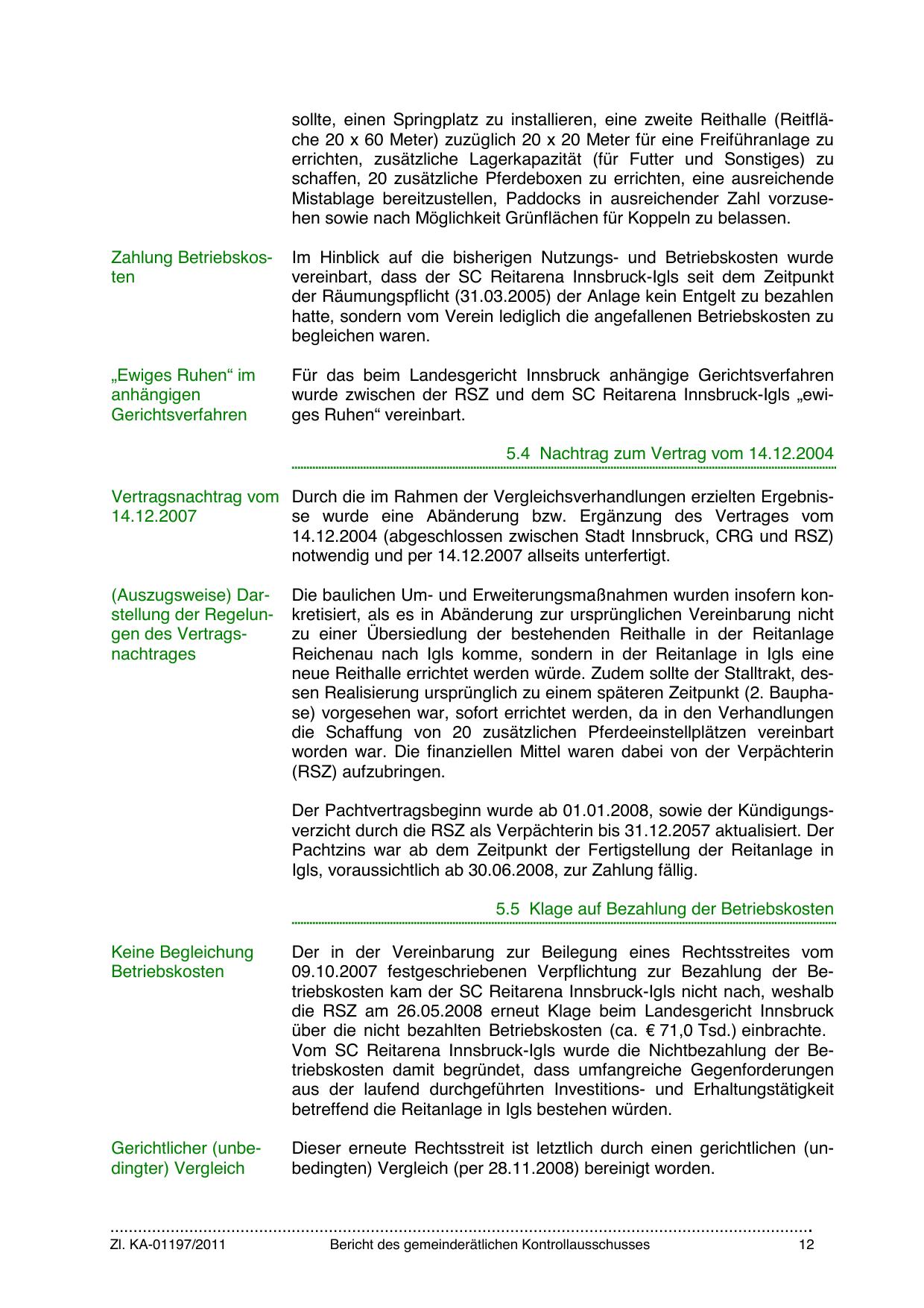 09.10.2007 festgeschriebenen Verpflichtung zur Bezahlung der Betriebskosten kam der SC Reitarena Innsbruck-Igls nicht nach, weshalb