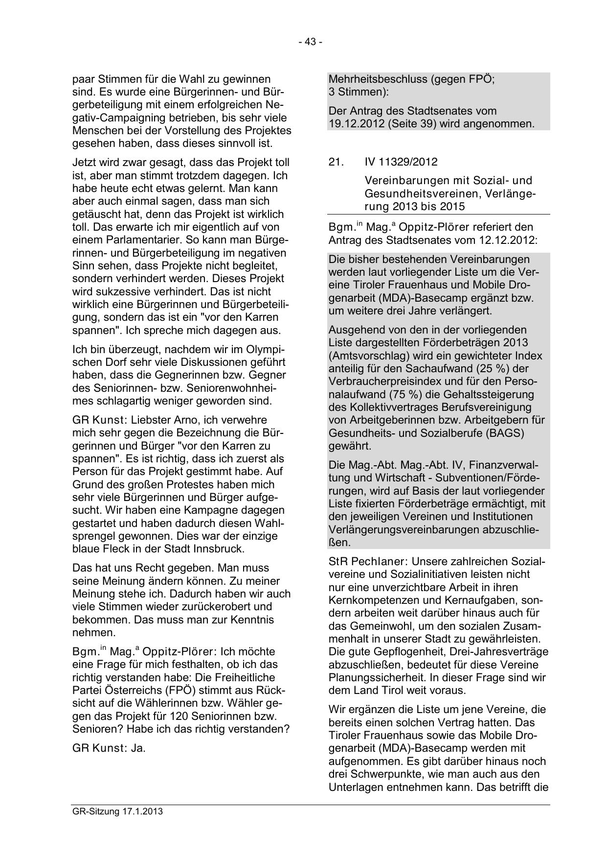 Partei Österreichs (FPÖ) stimmt aus Rücksicht auf die Wählerinnen bzw. Wähler gegen das Projekt für 120 Seniorinnen bzw.