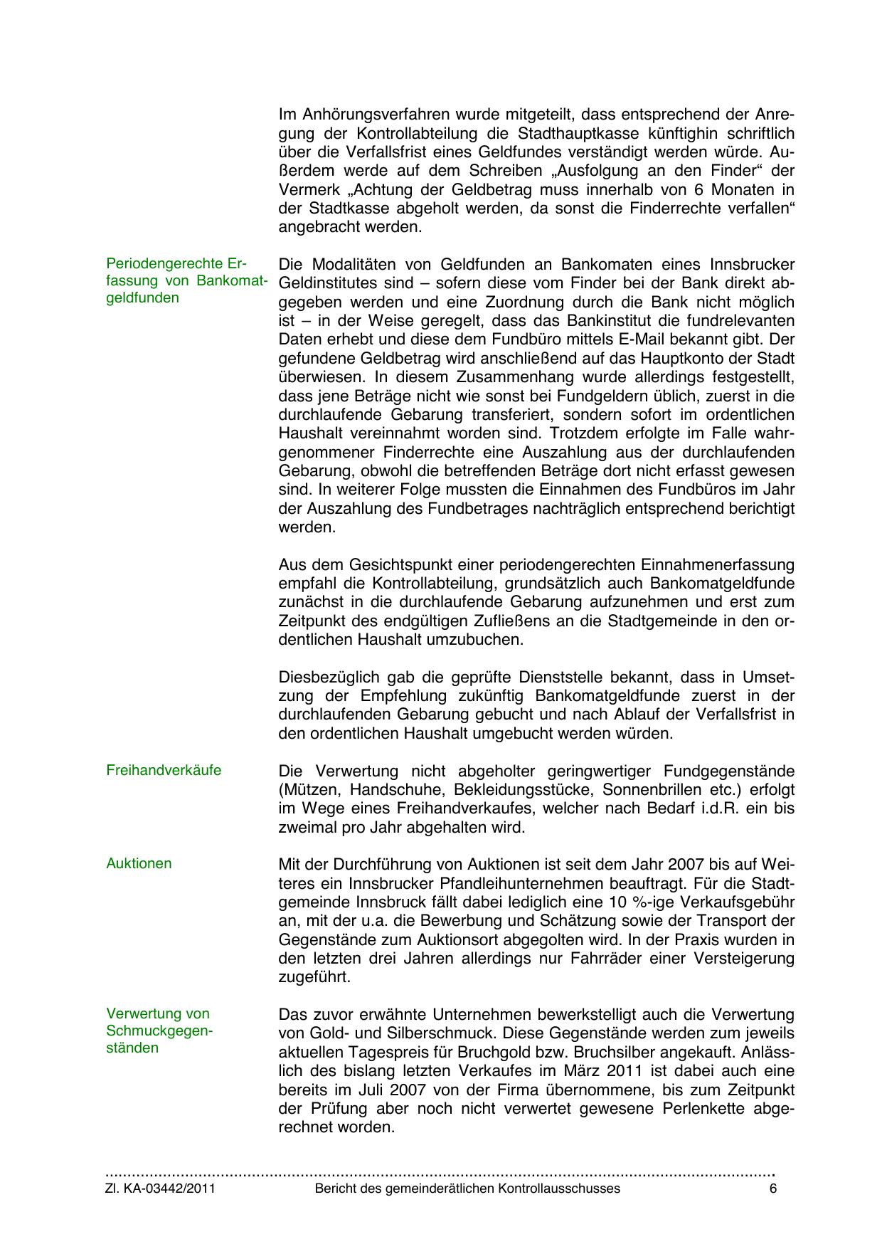Diesbezüglich gab die geprüfte Dienststelle bekannt, dass in Umsetzung der Empfehlung zukünftig Bankomatgeldfunde zuerst in der