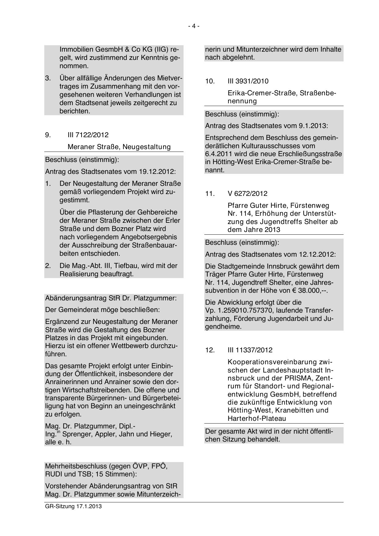 Mag. Dr. Platzgummer sowie MitunterzeichGR-Sitzung 17.1.2013