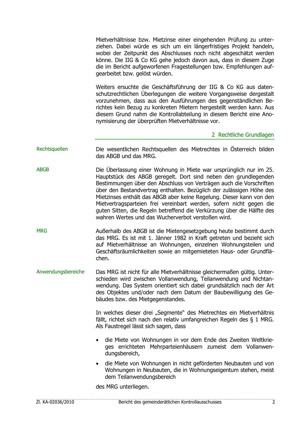 diesem Grund nahm die Kontrollabteilung in diesem Bericht eine Anonymisierung der überprüften Mietverhältnisse vor.