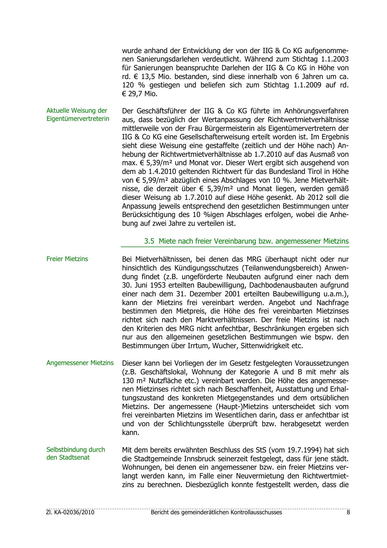 3.5 Miete nach freier Vereinbarung bzw. angemessener Mietzins