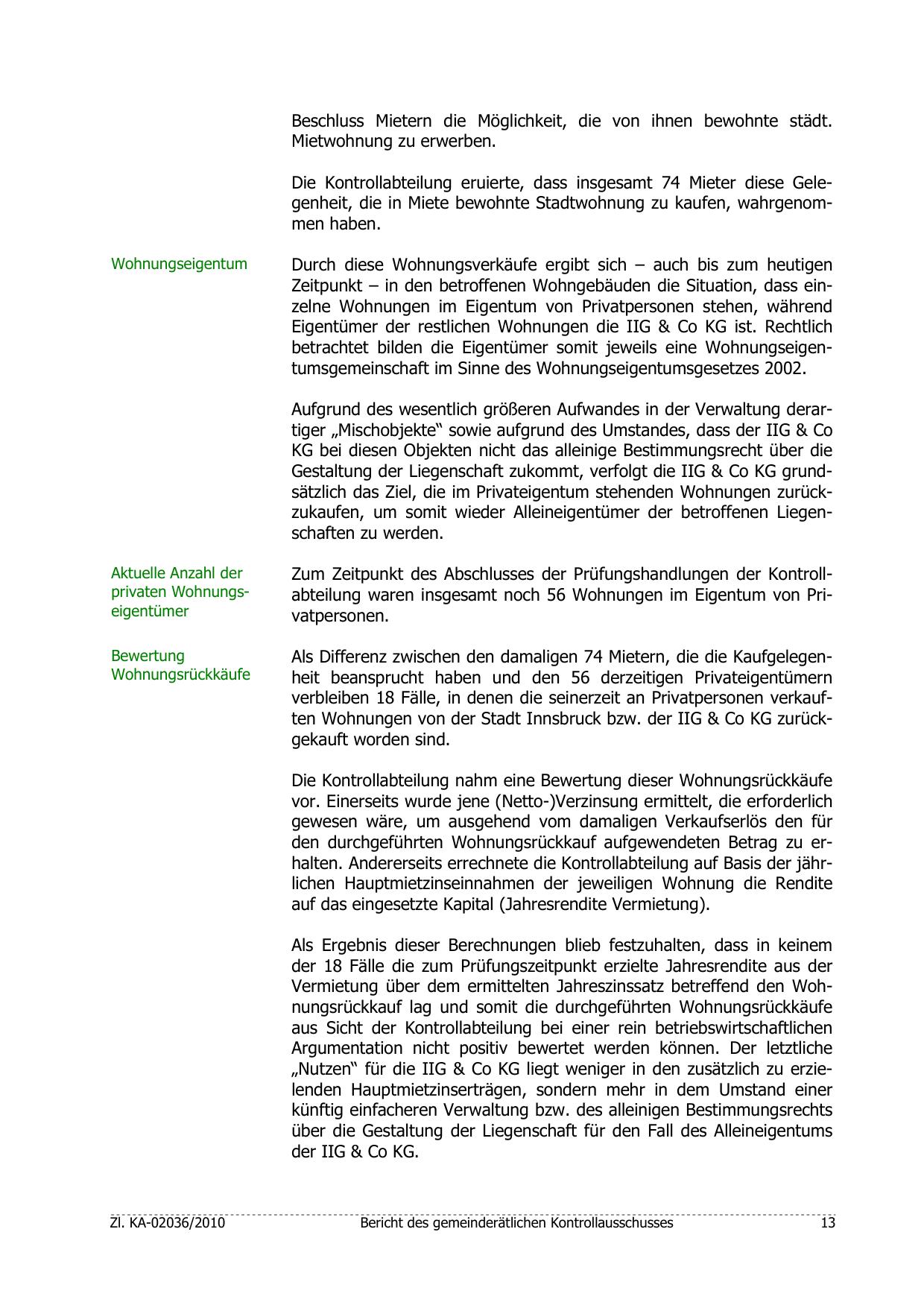 Gestaltung der Liegenschaft zukommt, verfolgt die IIG & Co KG grundsätzlich das Ziel, die im Privateigentum stehenden Wohnungen zurückzukaufen, um somit wieder Alleineigentümer der betroffenen Liegenschaften zu werden.