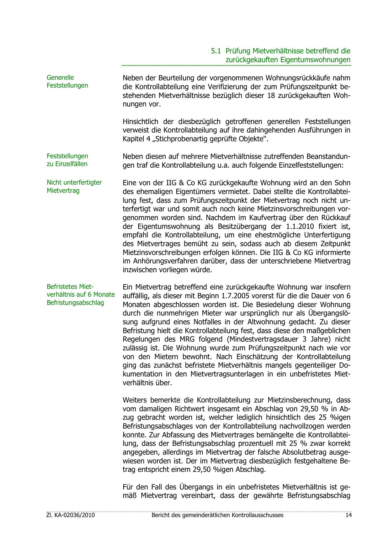 die Kontrollabteilung eine Verifizierung der zum Prüfungszeitpunkt bestehenden Mietverhältnisse bezüglich dieser 18 zurückgekauften Wohnungen vor.