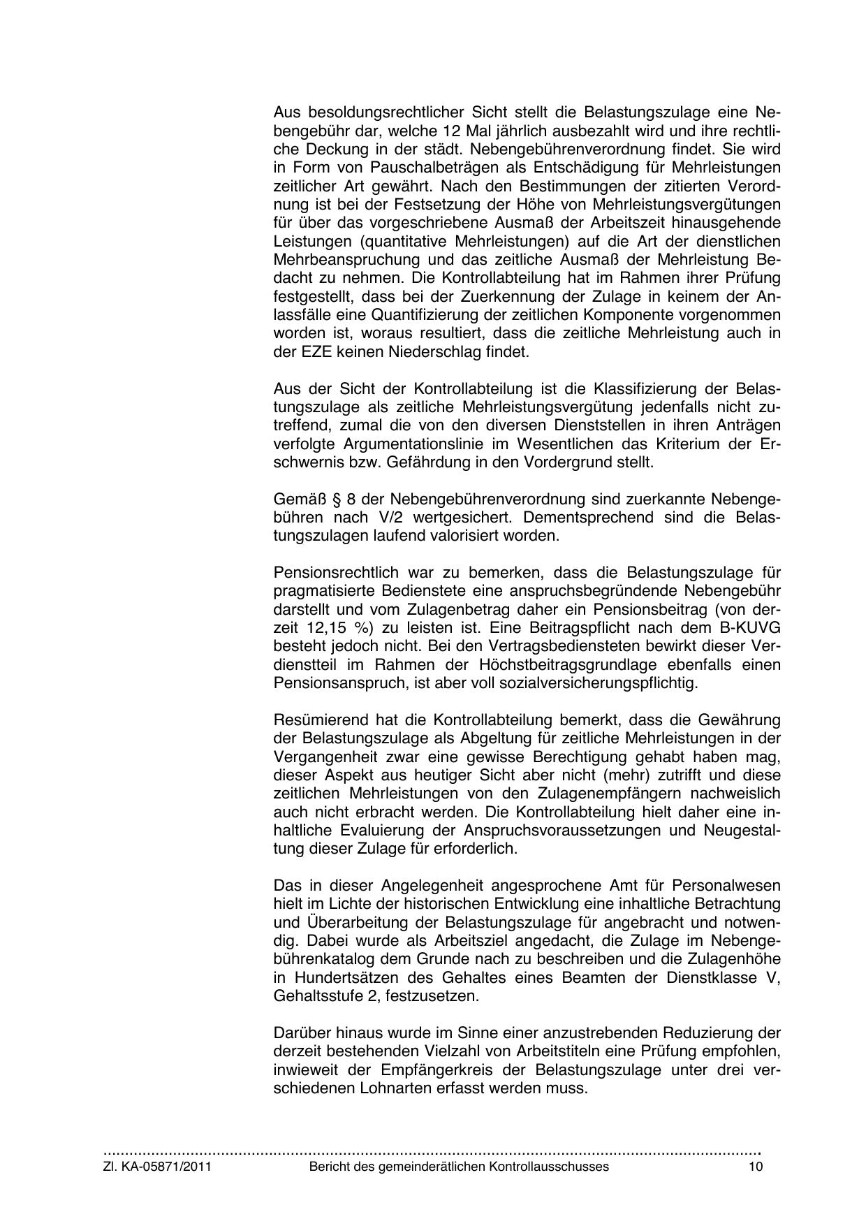 auch nicht erbracht werden. Die Kontrollabteilung hielt daher eine inhaltliche Evaluierung der Anspruchsvoraussetzungen und Neugestaltung dieser Zulage für erforderlich.