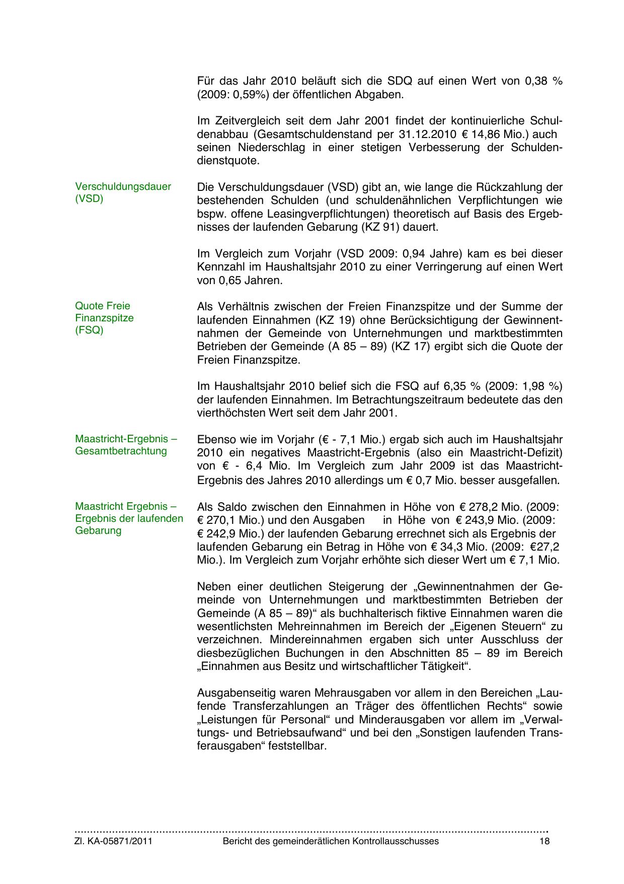 von € - 6,4 Mio. Im Vergleich zum Jahr 2009 ist das MaastrichtErgebnis des Jahres 2010 allerdings um € 0,7 Mio. besser ausgefallen.