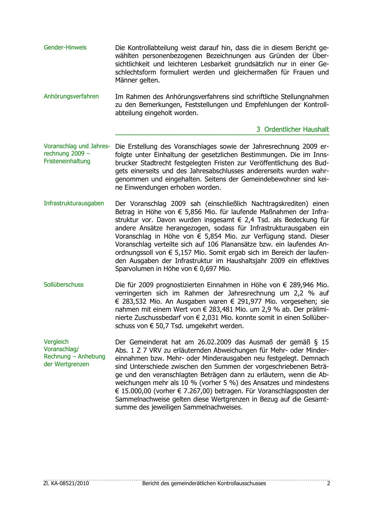 Voranschlag verteilte sich auf 106 Planansätze bzw. ein laufendes Anordnungssoll von € 5,157 Mio. Somit ergab sich im Bereich der laufenden Ausgaben der Infrastruktur im Haushaltsjahr 2009 ein effektives