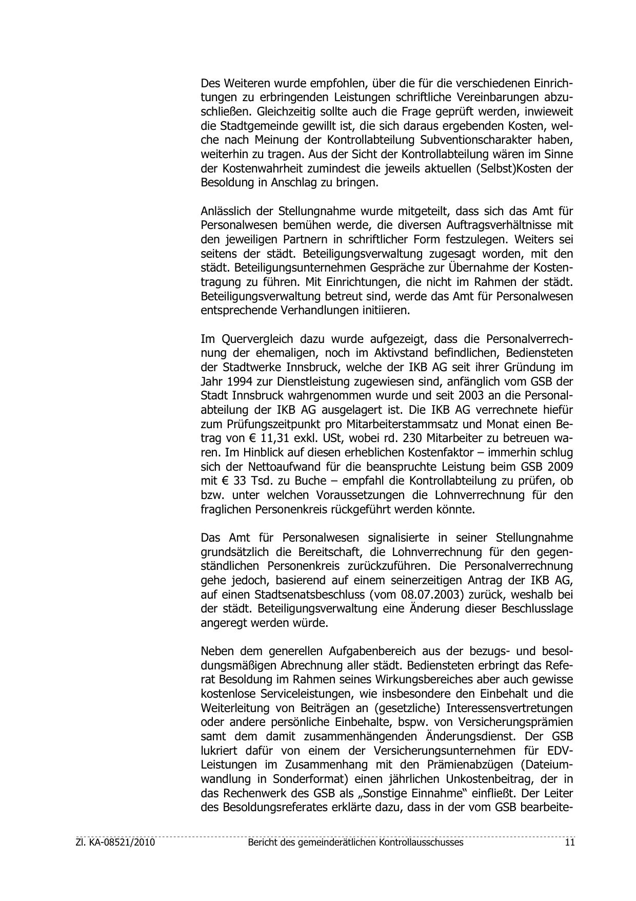 Stadt Innsbruck wahrgenommen wurde und seit 2003 an die Personalabteilung der IKB AG ausgelagert ist. Die IKB AG verrechnete hiefür
