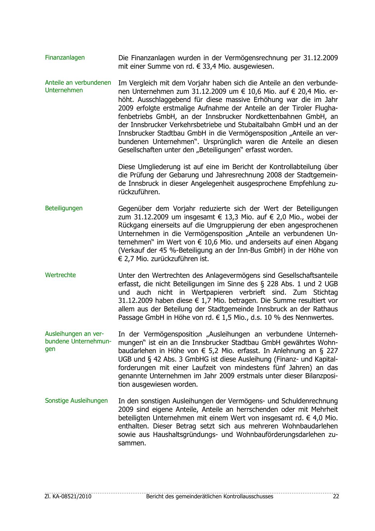 Innsbrucker Stadtbau GmbH in die Vermögensposition „Anteile an verbundenen Unternehmen“. Ursprünglich waren die Anteile an diesen