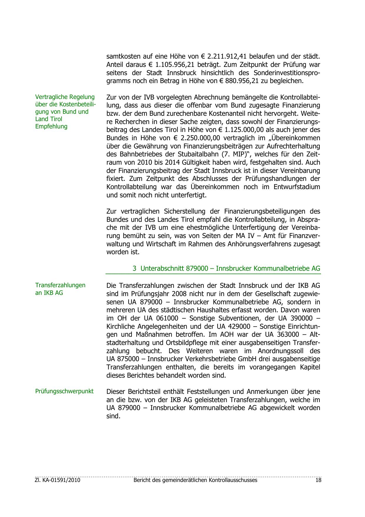 UA 875000 – Innsbrucker Verkehrsbetriebe GmbH drei ausgabenseitige