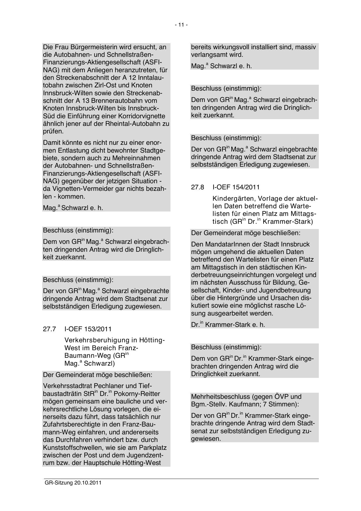 Der von GRin Dr.in Krammer-Stark eingebrachte dringende Antrag wird dem Stadtsenat zur selbstständigen Erledigung zugewiesen.