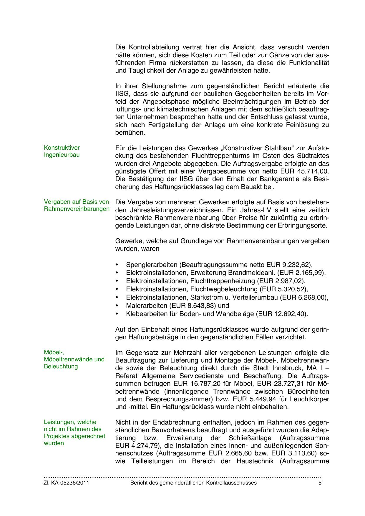 Nicht in der Endabrechnung enthalten, jedoch im Rahmen des gegenständlichen Bauvorhabens beauftragt und ausgeführt wurden die Adaptierung bzw. Erweiterung der Schließanlage (Auftragssumme