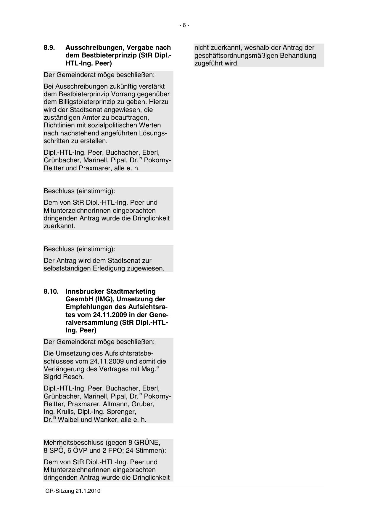 dem Bestbieterprinzip (StR Dipl.HTL-Ing. Peer)