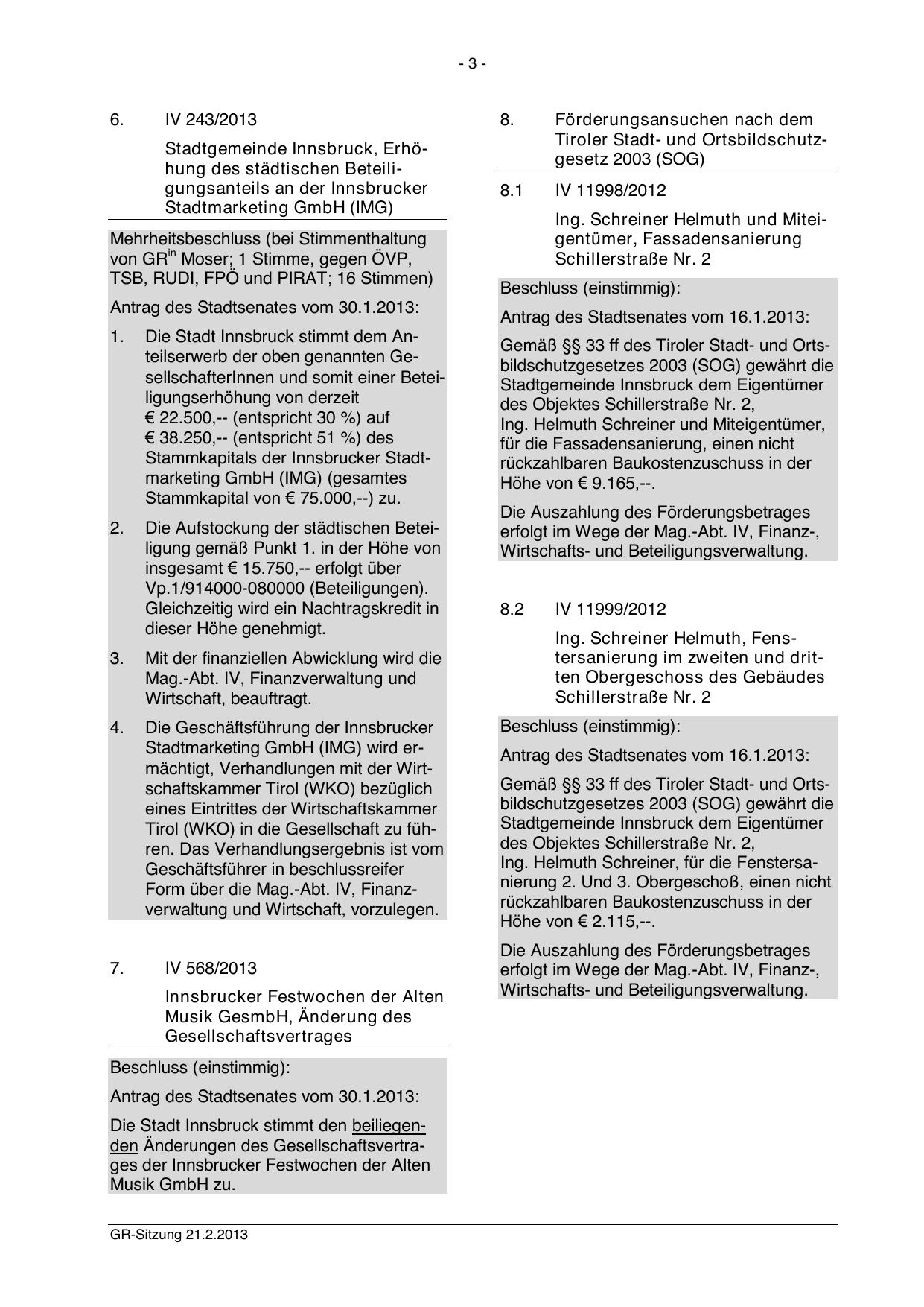 Ing. Helmuth Schreiner, für die Fenstersanierung 2. Und 3. Obergeschoß, einen nicht