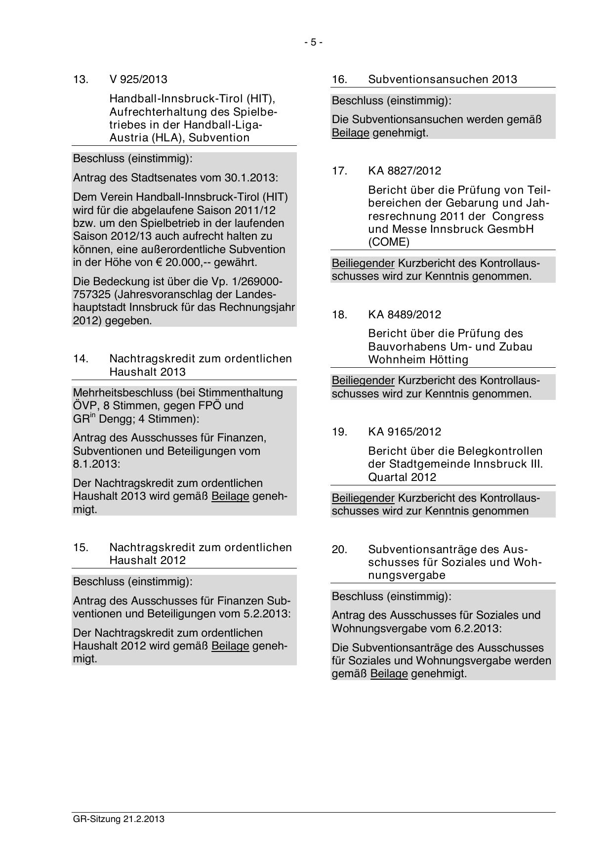 GR-Sitzung 21.2.2013