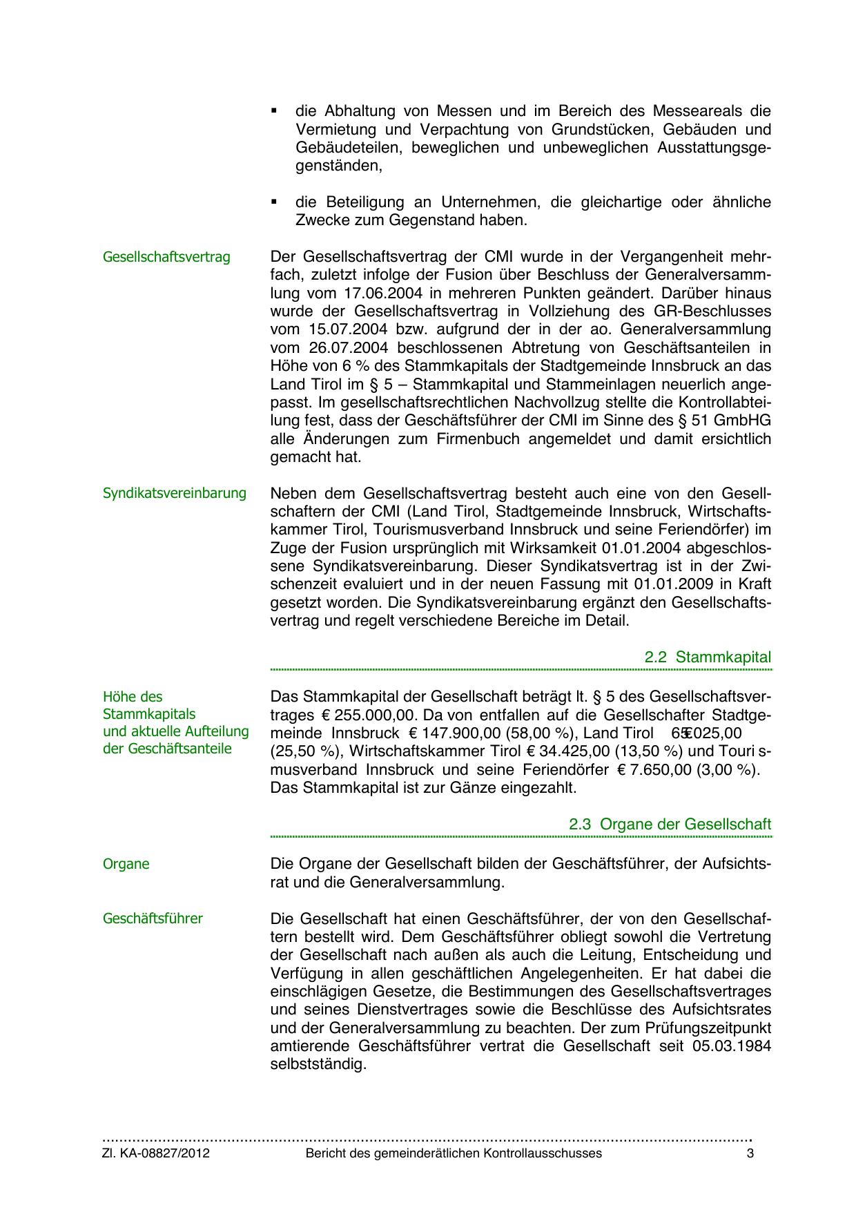 Land Tirol im § 5 – Stammkapital und Stammeinlagen neuerlich angepasst. Im gesellschaftsrechtlichen Nachvollzug stellte die Kontrollabteilung fest, dass der Geschäftsführer der CMI im Sinne des § 51 GmbHG
