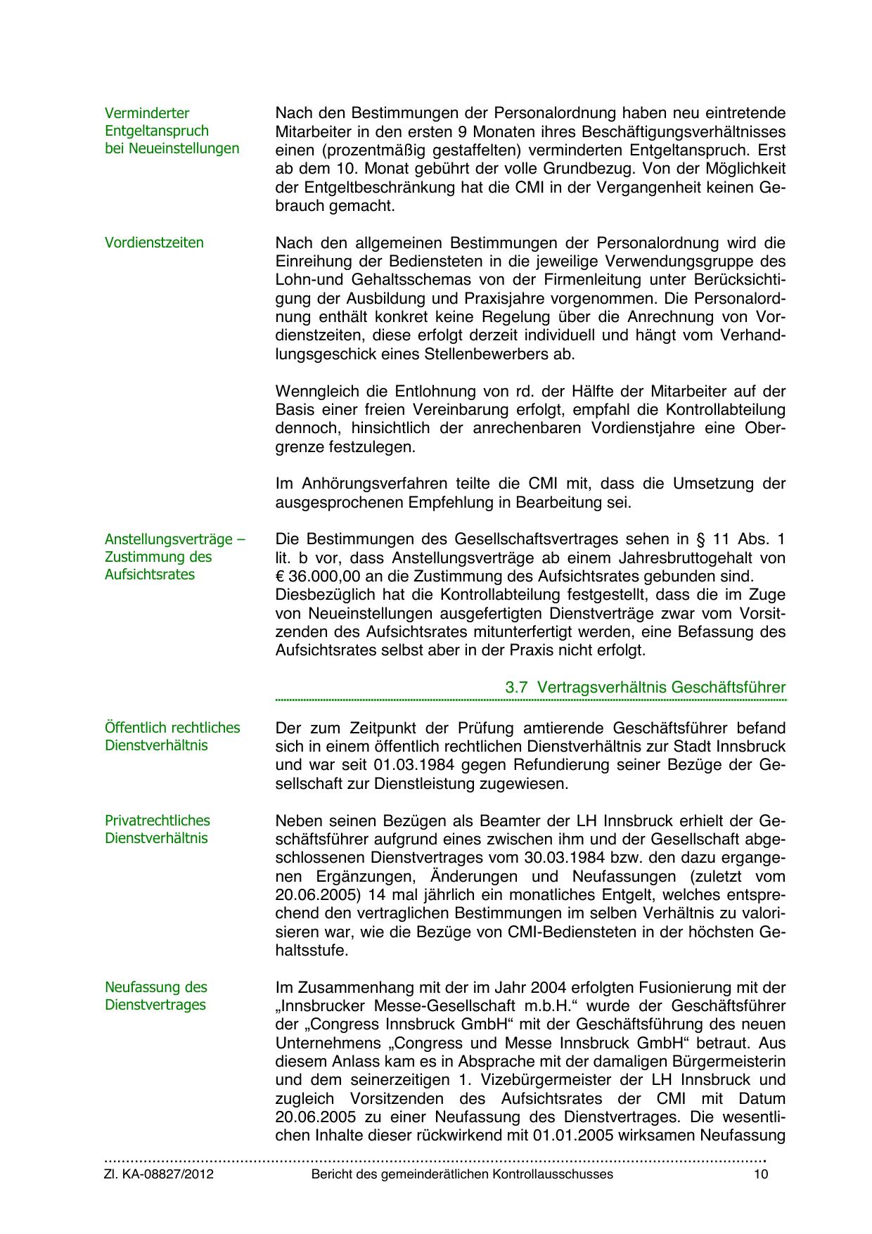 Neben seinen Bezügen als Beamter der LH Innsbruck erhielt der Geschäftsführer aufgrund eines zwischen ihm und der Gesellschaft abgeschlossenen Dienstvertrages vom 30.03.1984 bzw. den dazu ergangenen Ergänzungen, Änderungen und Neufassungen (zuletzt vom