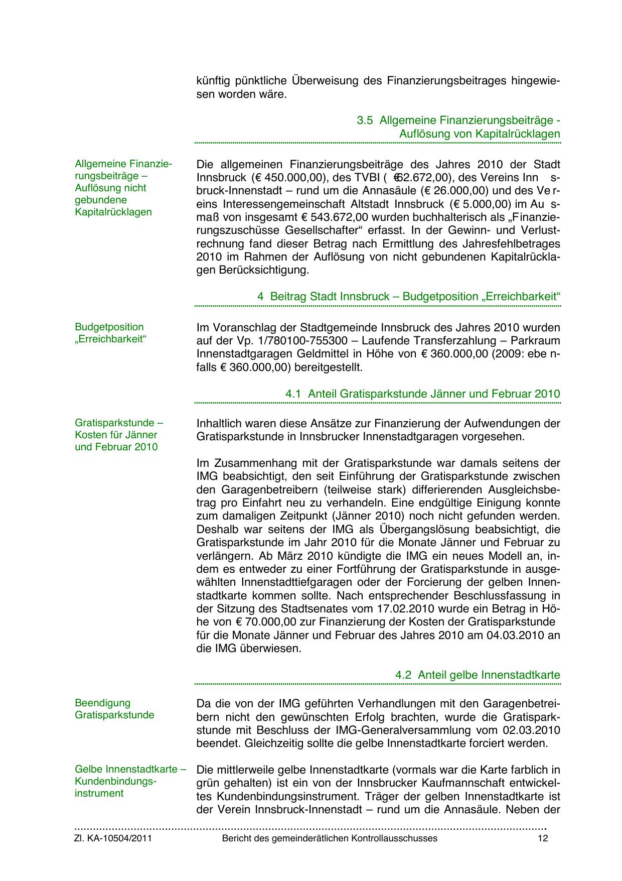 Innenstadtgaragen Geldmittel in Höhe von € 360.000,00 (2009: ebe nfalls € 360.000,00) bereitgestellt.