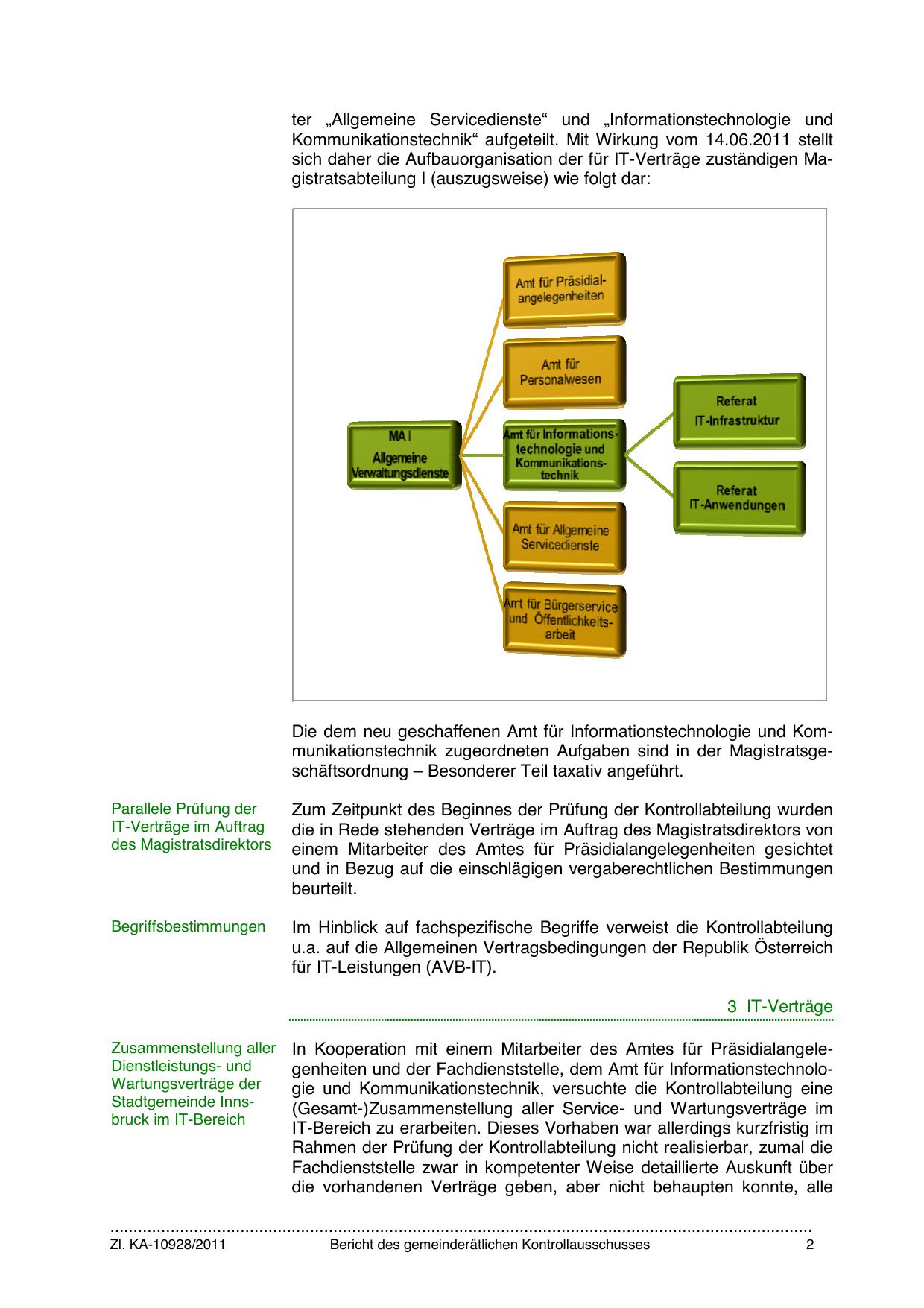 sich daher die Aufbauorganisation der für IT-Verträge zuständigen Magistratsabteilung I (auszugsweise) wie folgt dar: