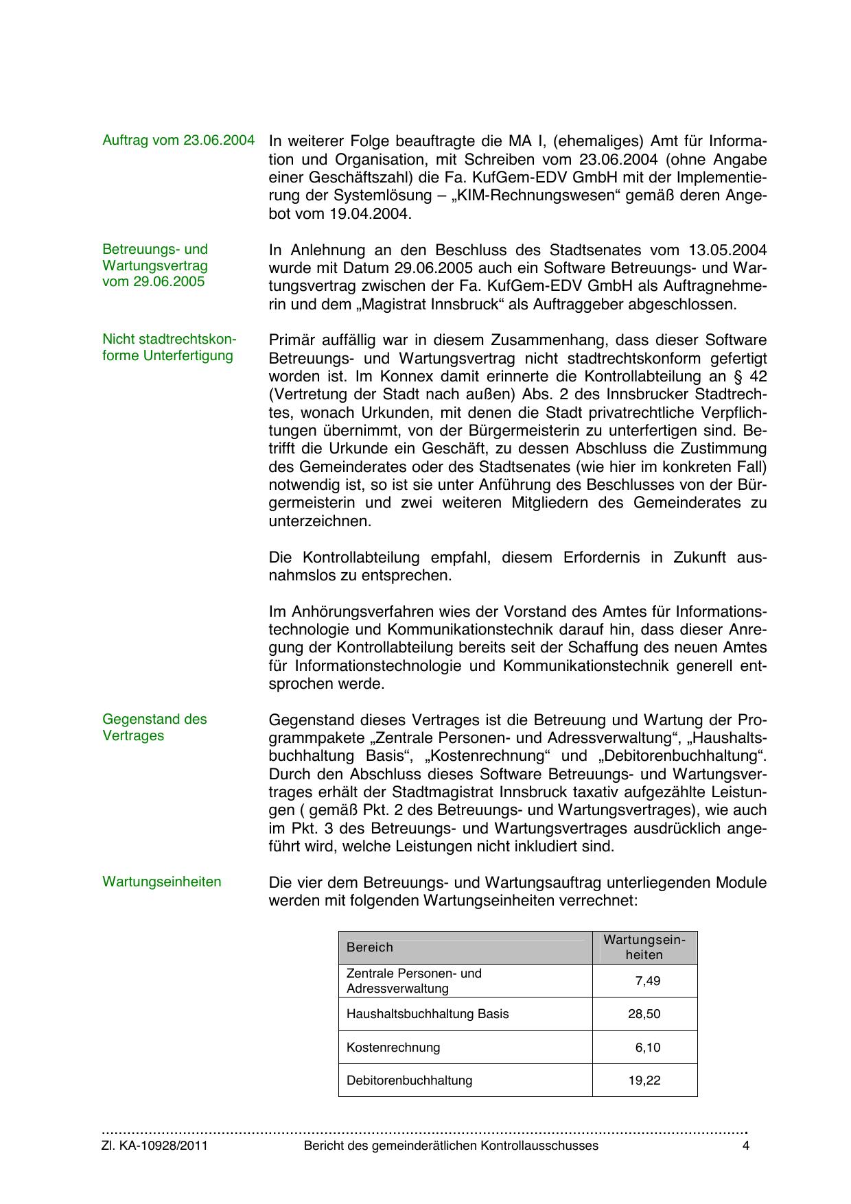 wurde mit Datum 29.06.2005 auch ein Software Betreuungs- und Wartungsvertrag zwischen der Fa. KufGem-EDV GmbH als Auftragnehmerin und dem „Magistrat Innsbruck“ als Auftraggeber abgeschlossen.