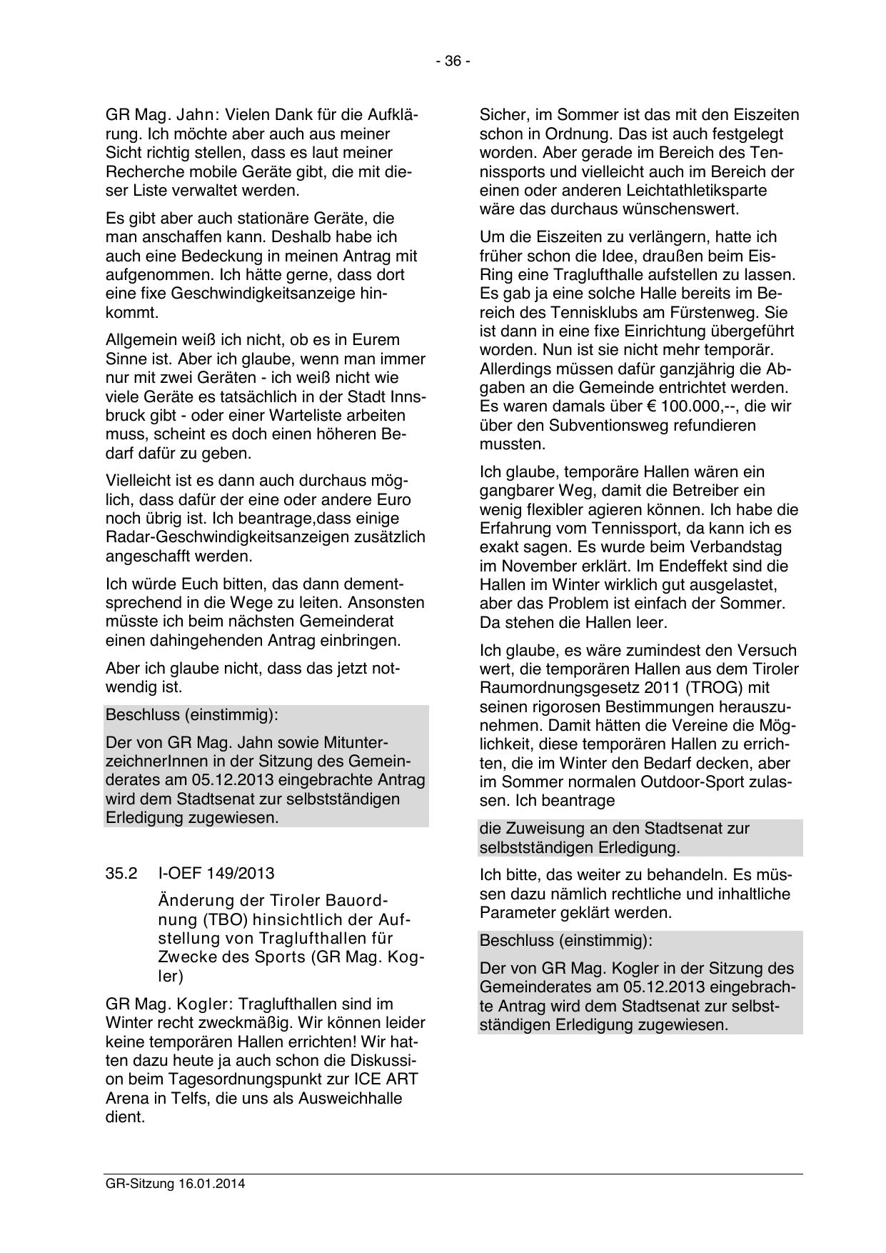 Der von GR Mag. Jahn sowie MitunterzeichnerInnen in der Sitzung des Gemeinderates am 05.12.2013 eingebrachte Antrag