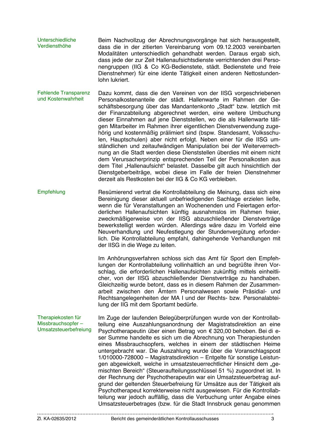 dieser Einnahmen auf jene Dienststellen, wo die als Hallenwarte tätigen Mitarbeiter im Rahmen ihrer eigentlichen Dienstverwendung zugehörig und kostenmäßig prälimiert sind (bspw. Standesamt, Volksschulen, Hauptschulen) aber nicht erfolgt. Neben einer für die IISG umständlichen und zeitaufwändigen Manipulation bei der Weiterverrechnung an die Stadt werden diese Dienststellen überdies mit einem nicht