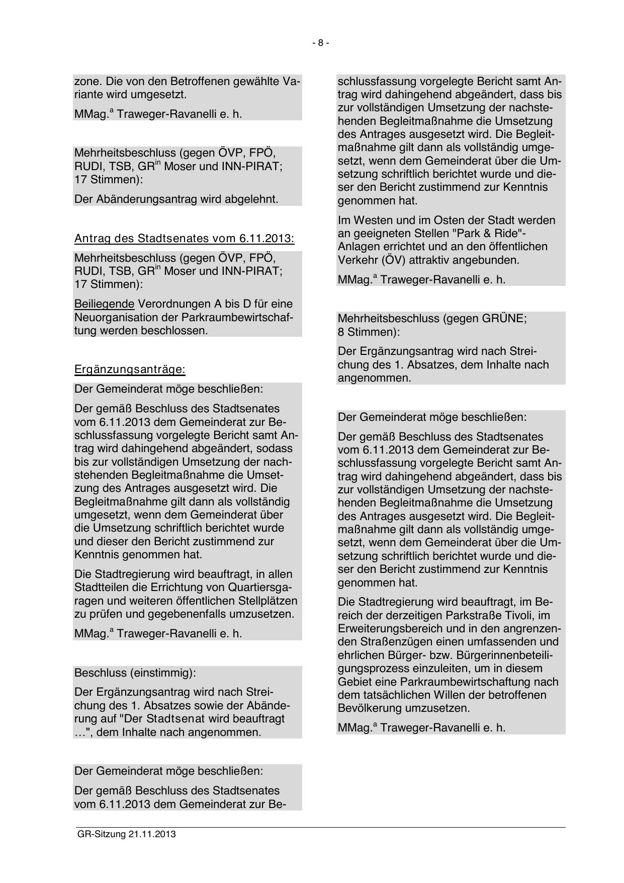 vom 6.11.2013 dem Gemeinderat zur Beschlussfassung vorgelegte Bericht samt Antrag wird dahingehend abgeändert, sodass