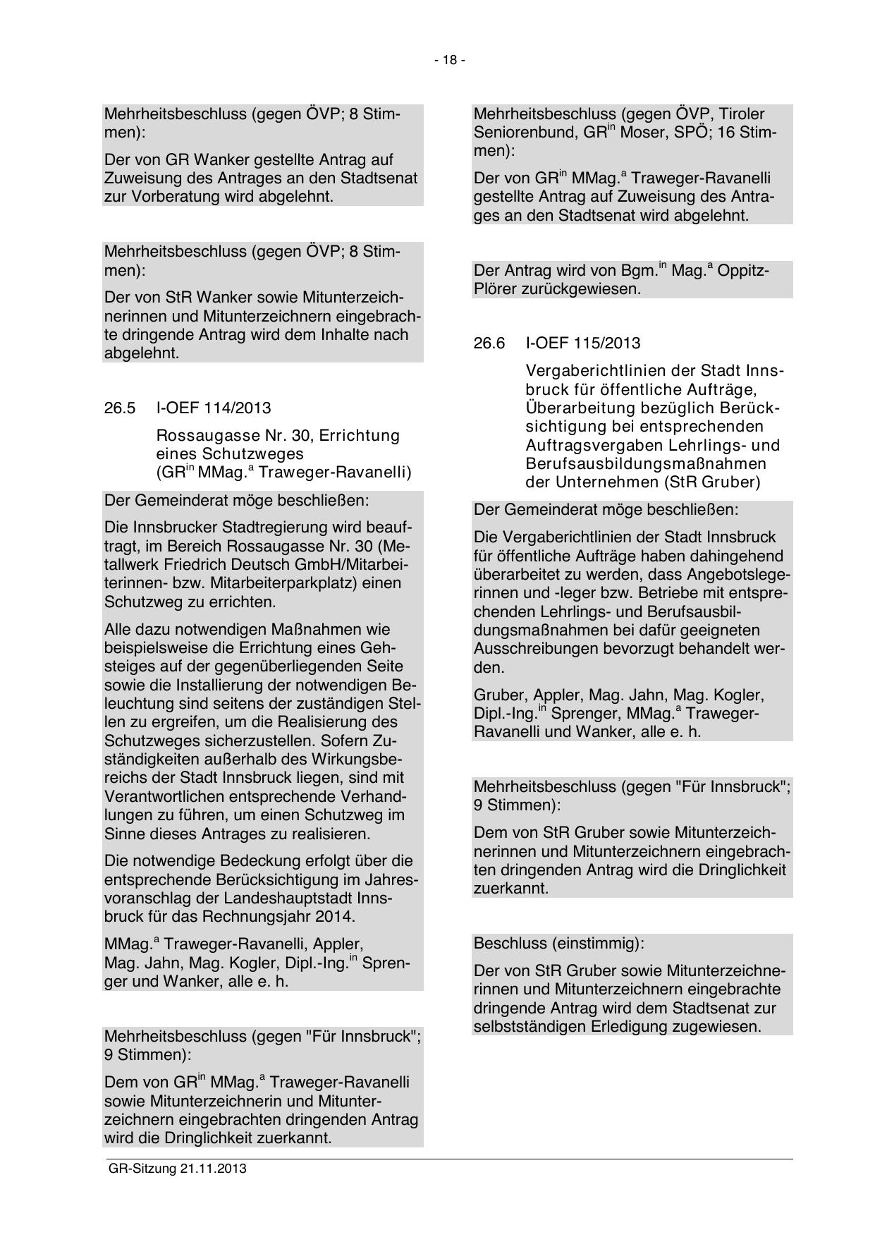 Mehrheitsbeschluss (gegen "Für Innsbruck";