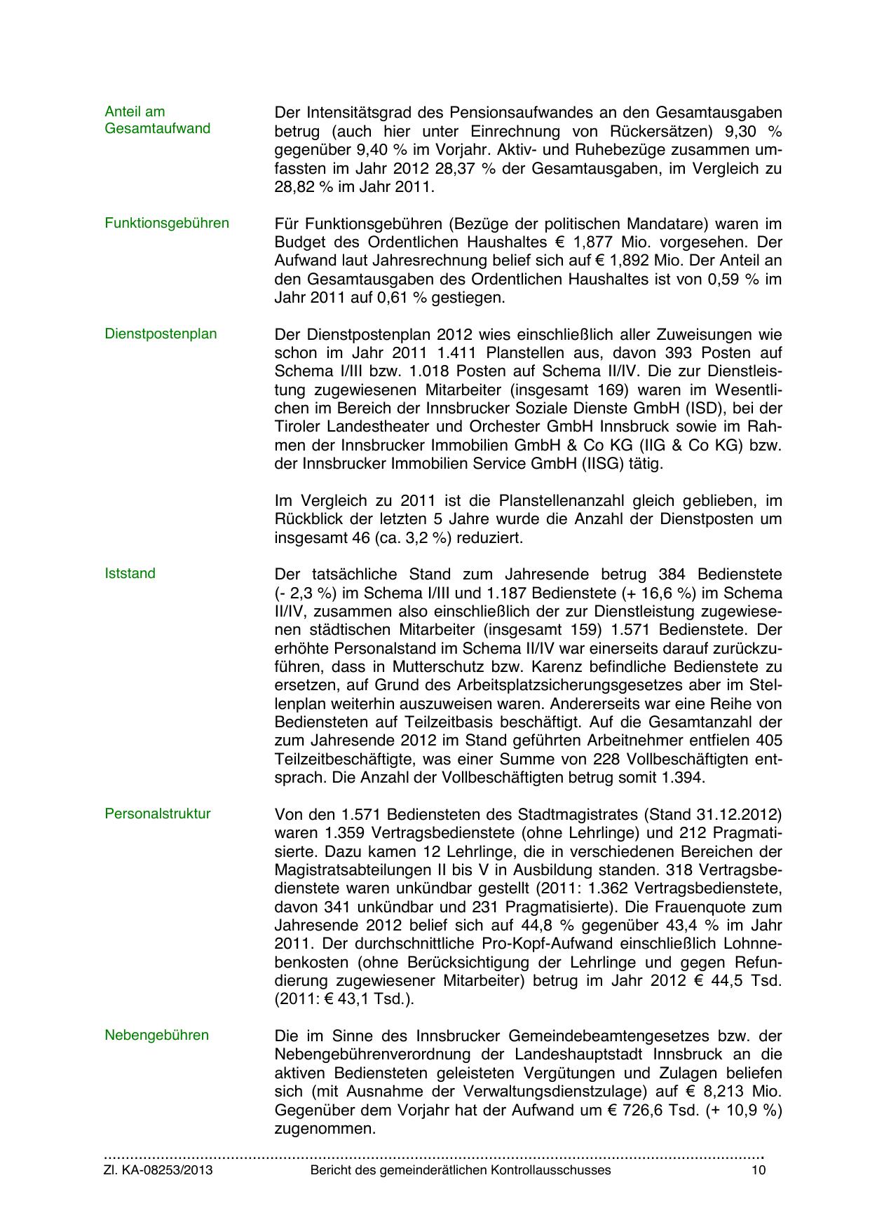 2011. Der durchschnittliche Pro-Kopf-Aufwand einschließlich Lohnnebenkosten (ohne Berücksichtigung der Lehrlinge und gegen Refundierung zugewiesener Mitarbeiter) betrug im Jahr 2012 € 44,5 Tsd.