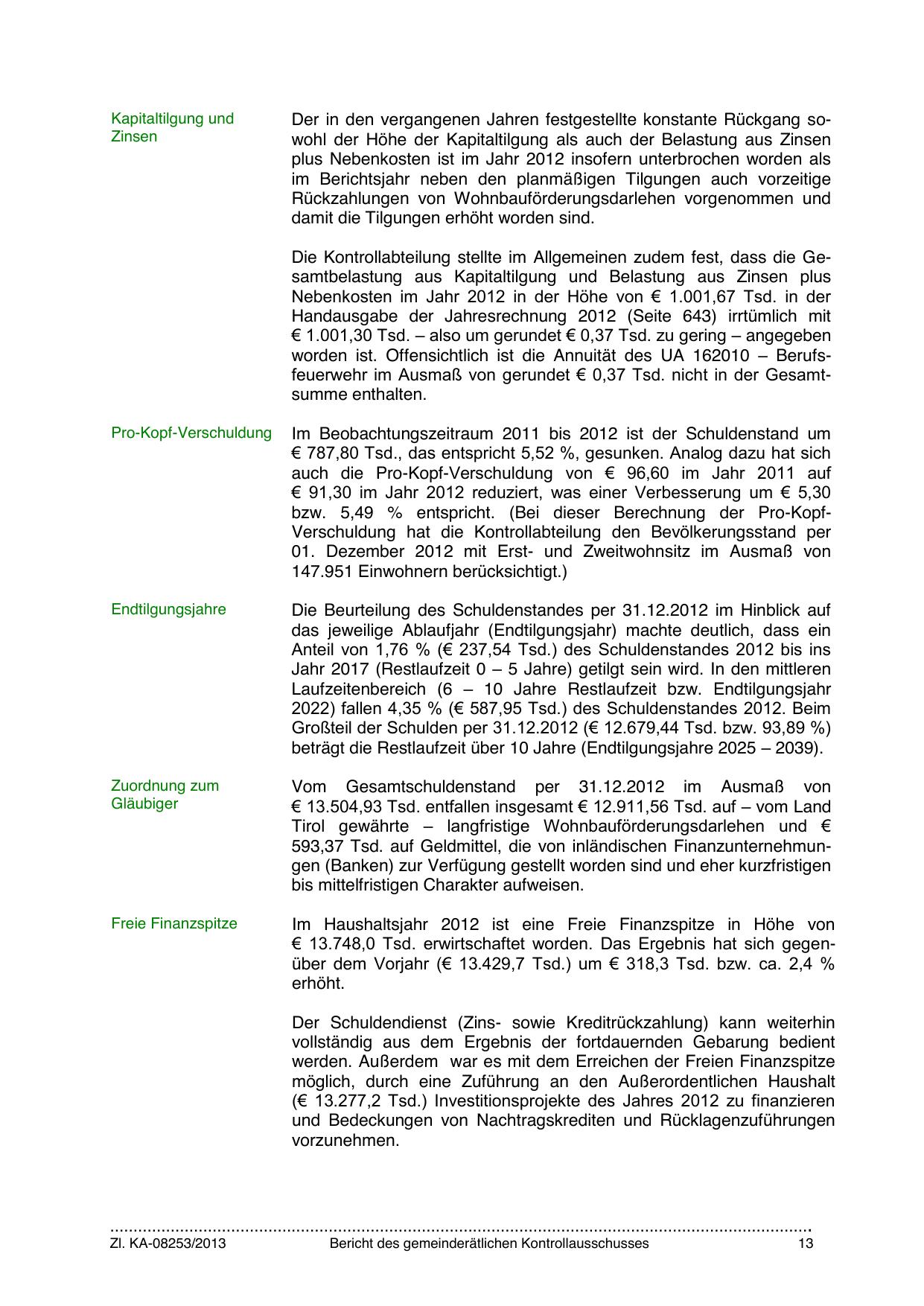 2022) fallen 4,35 % (€ 587,95 Tsd.) des Schuldenstandes 2012. Beim