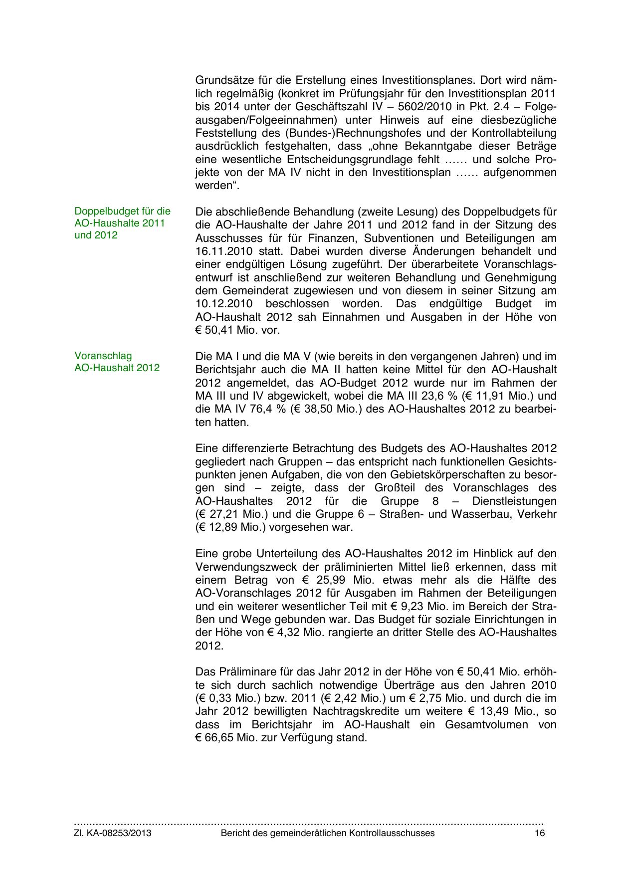 die MA IV 76,4 % (€ 38,50 Mio.) des AO-Haushaltes 2012 zu bearbeiten hatten.