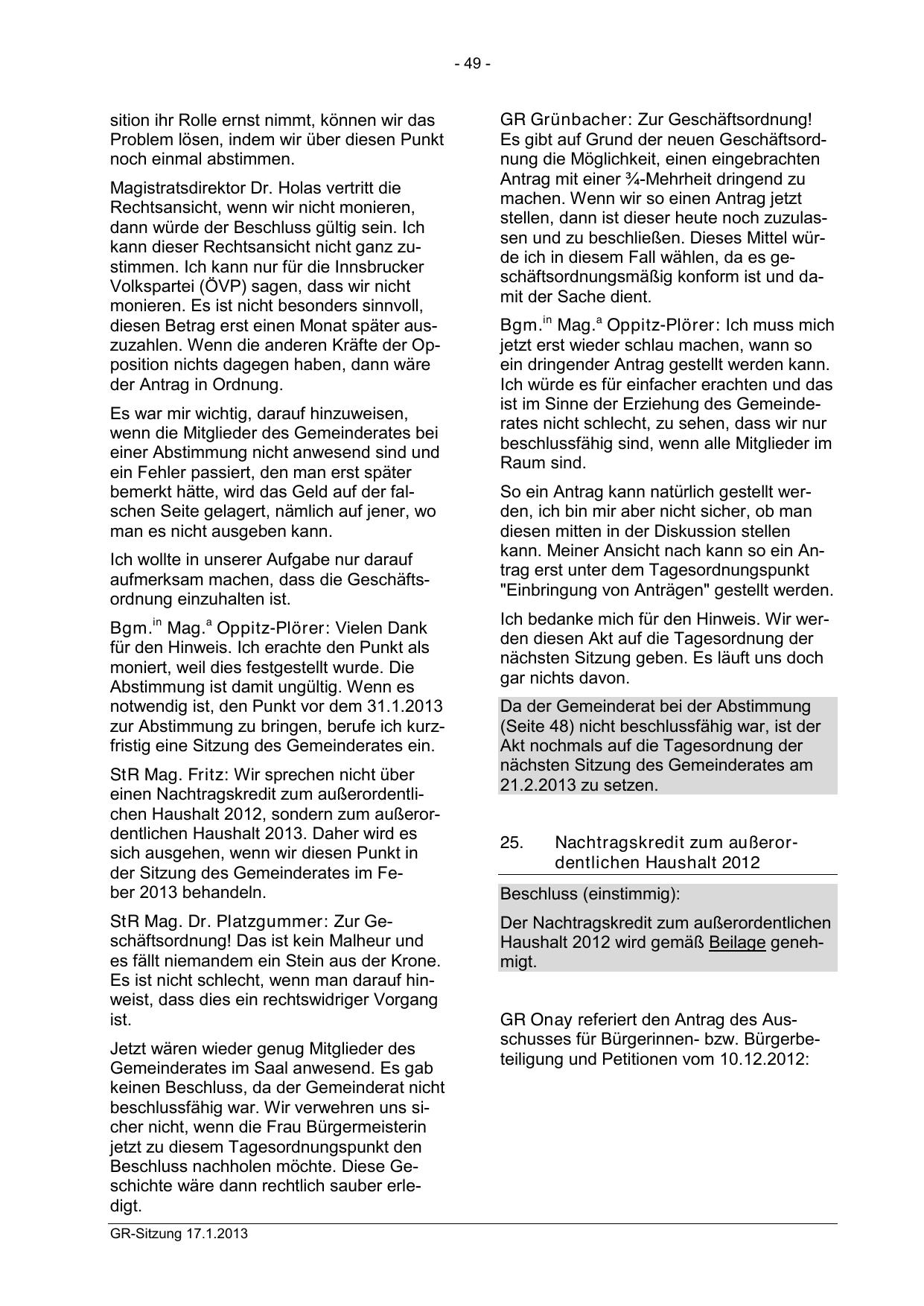 StR Mag. Dr. Platzgummer: Zur Geschäftsordnung! Das ist kein Malheur und
