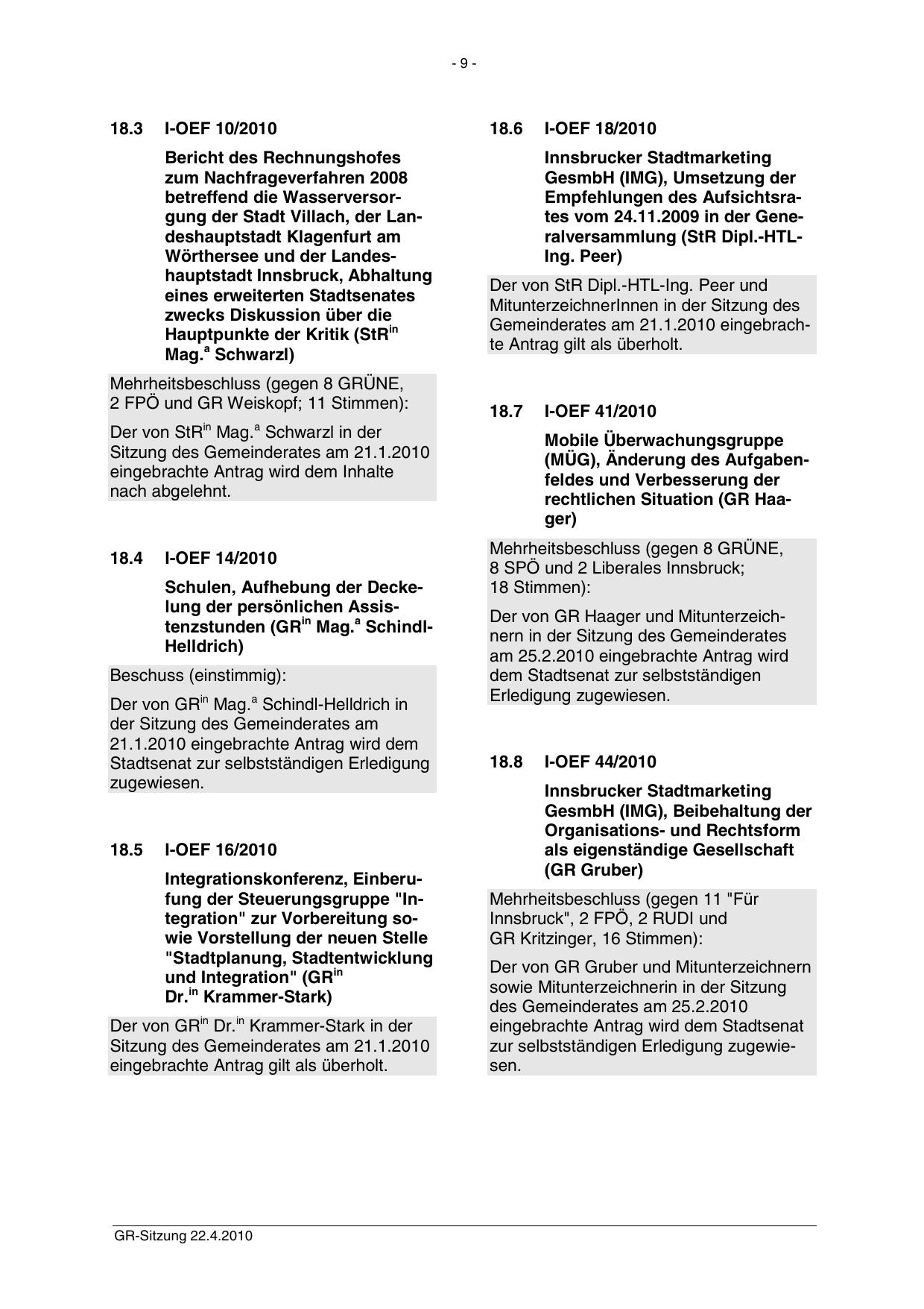 Gemeinderates am 21.1.2010 eingebrachte Antrag gilt als überholt.