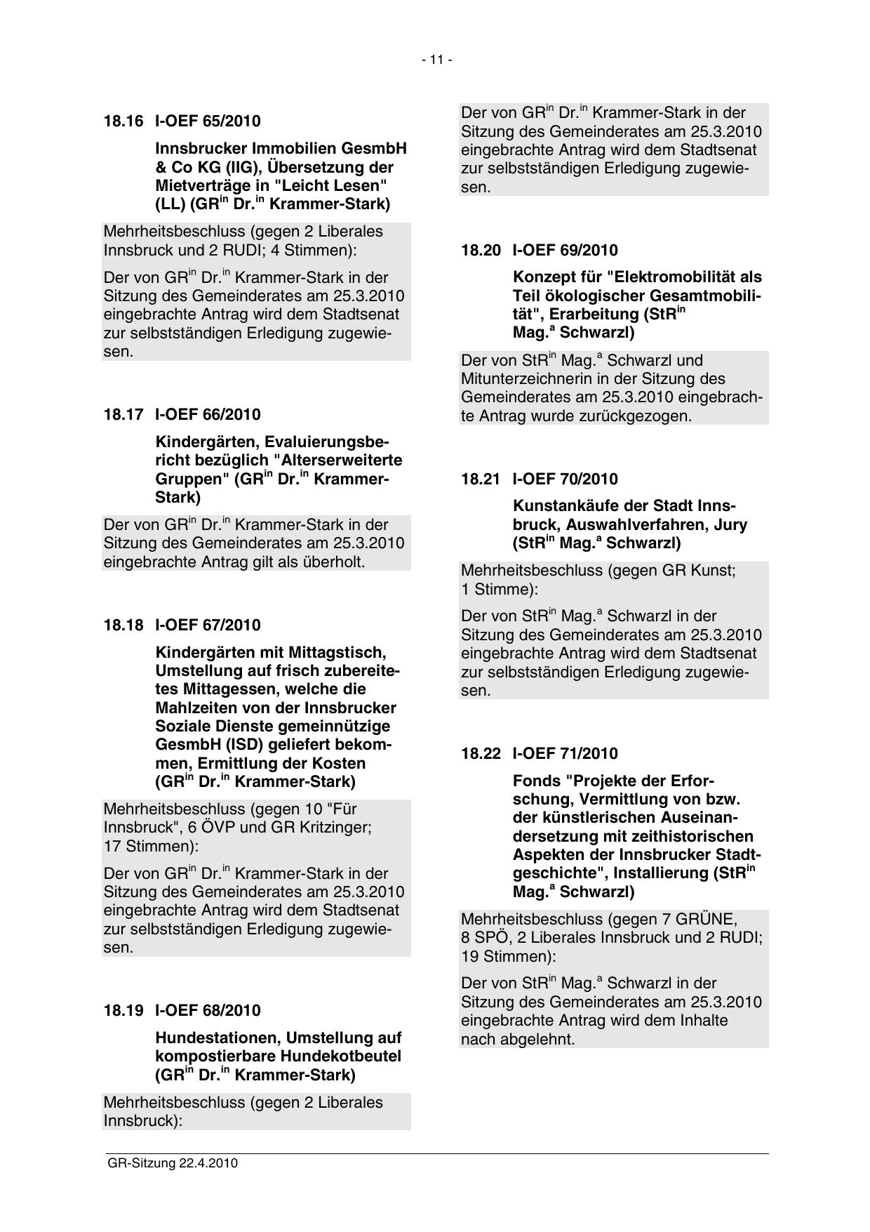 Gemeinderates am 25.3.2010 eingebrachte Antrag wurde zurückgezogen.