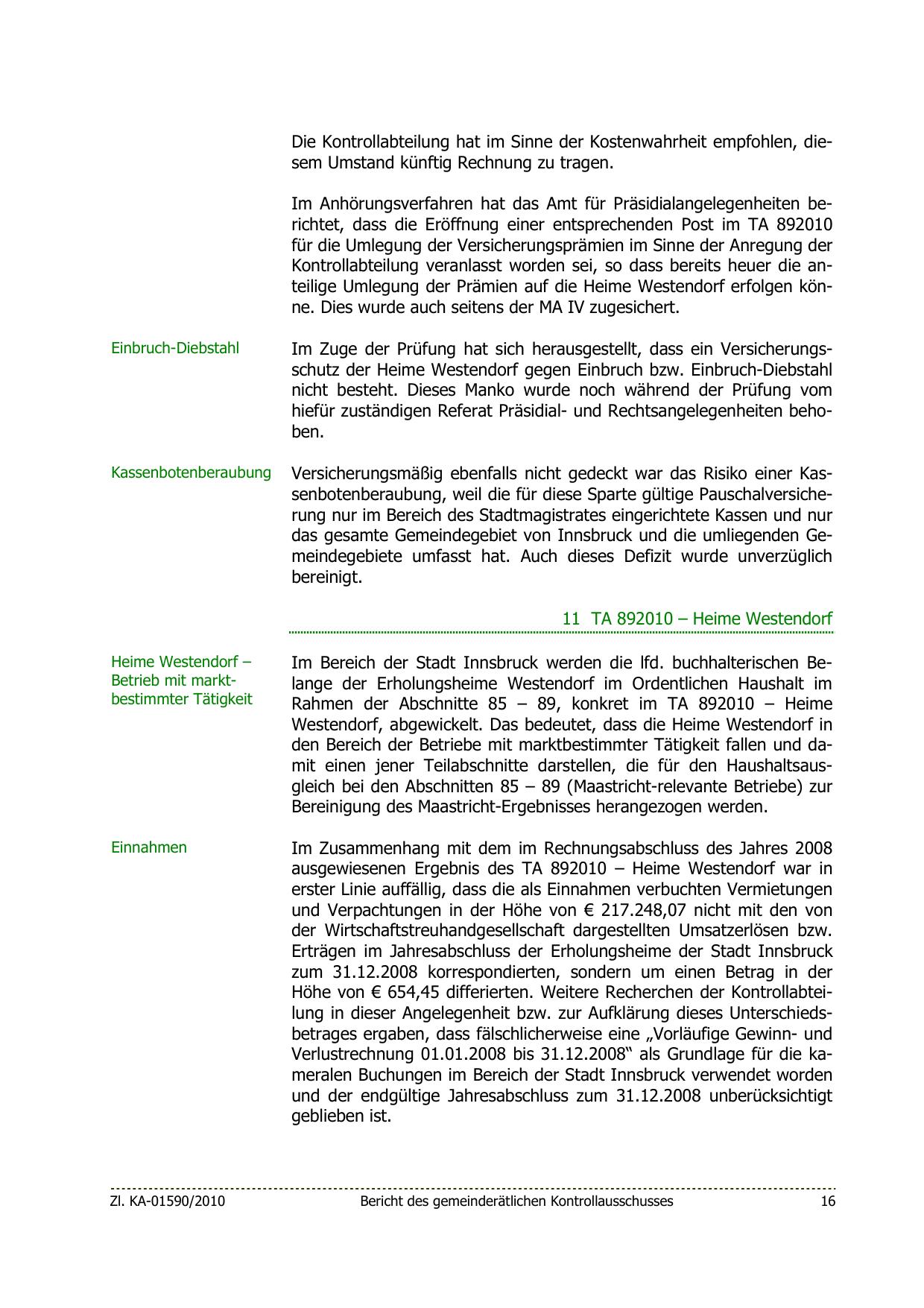 ausgewiesenen Ergebnis des TA 892010 – Heime Westendorf war in