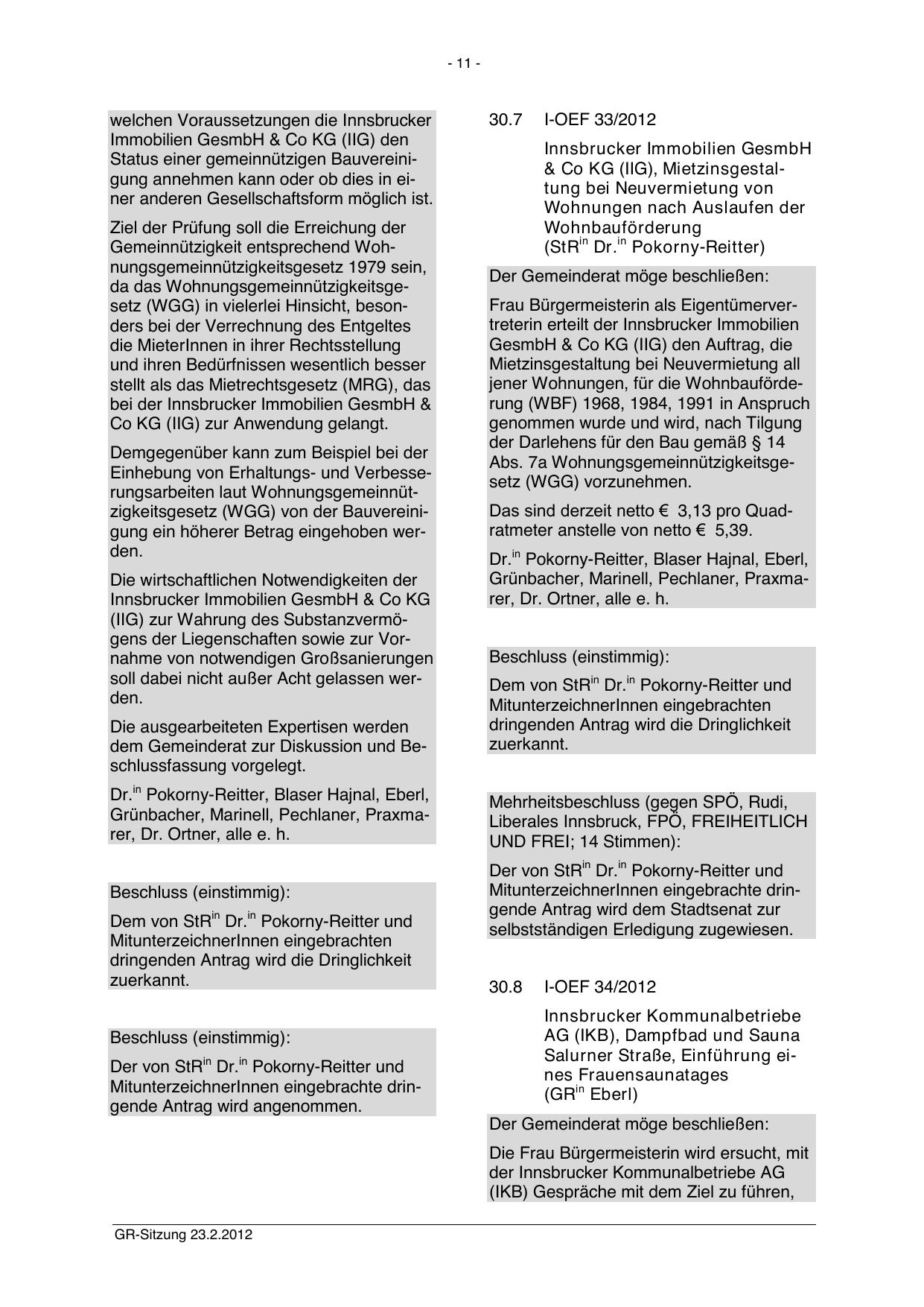 Frau Bürgermeisterin als Eigentümervertreterin erteilt der Innsbrucker Immobilien