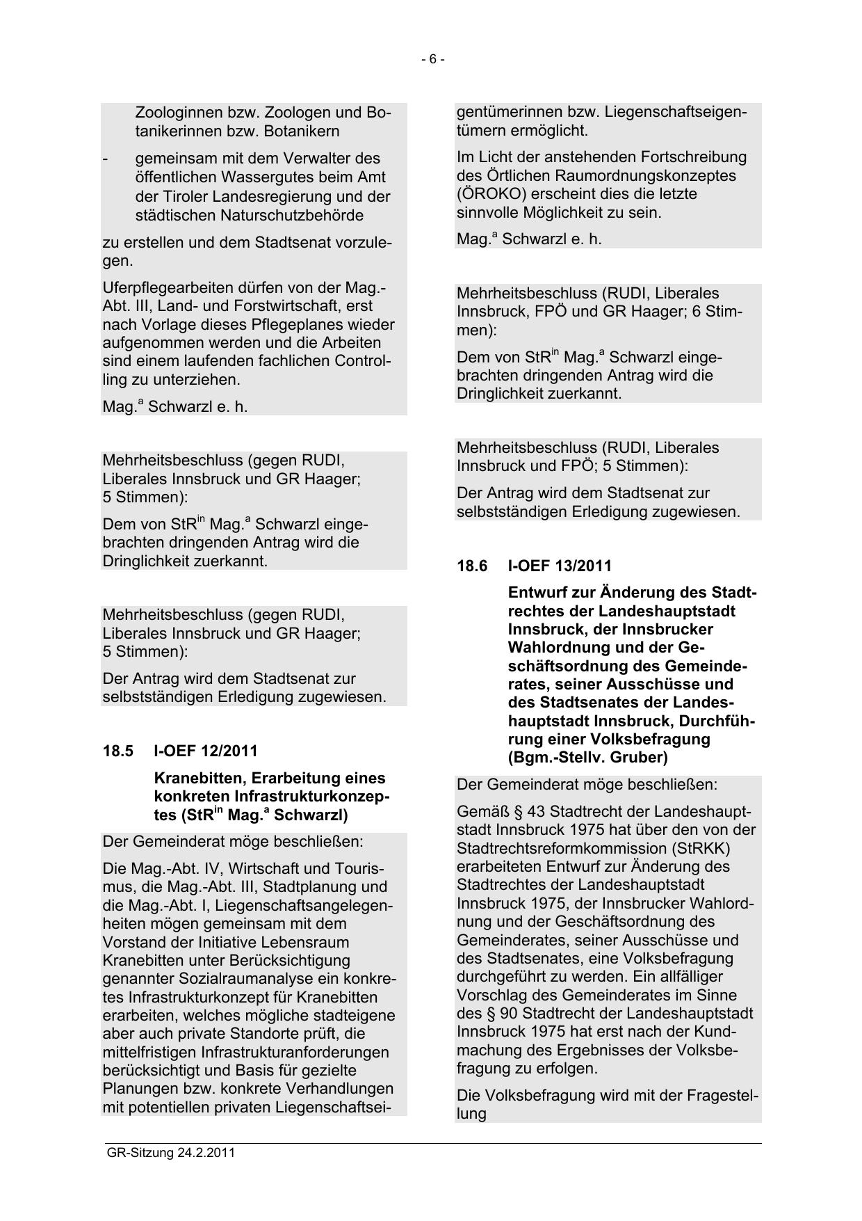 Innsbruck, FPÖ und GR Haager; 6 Stimmen):
