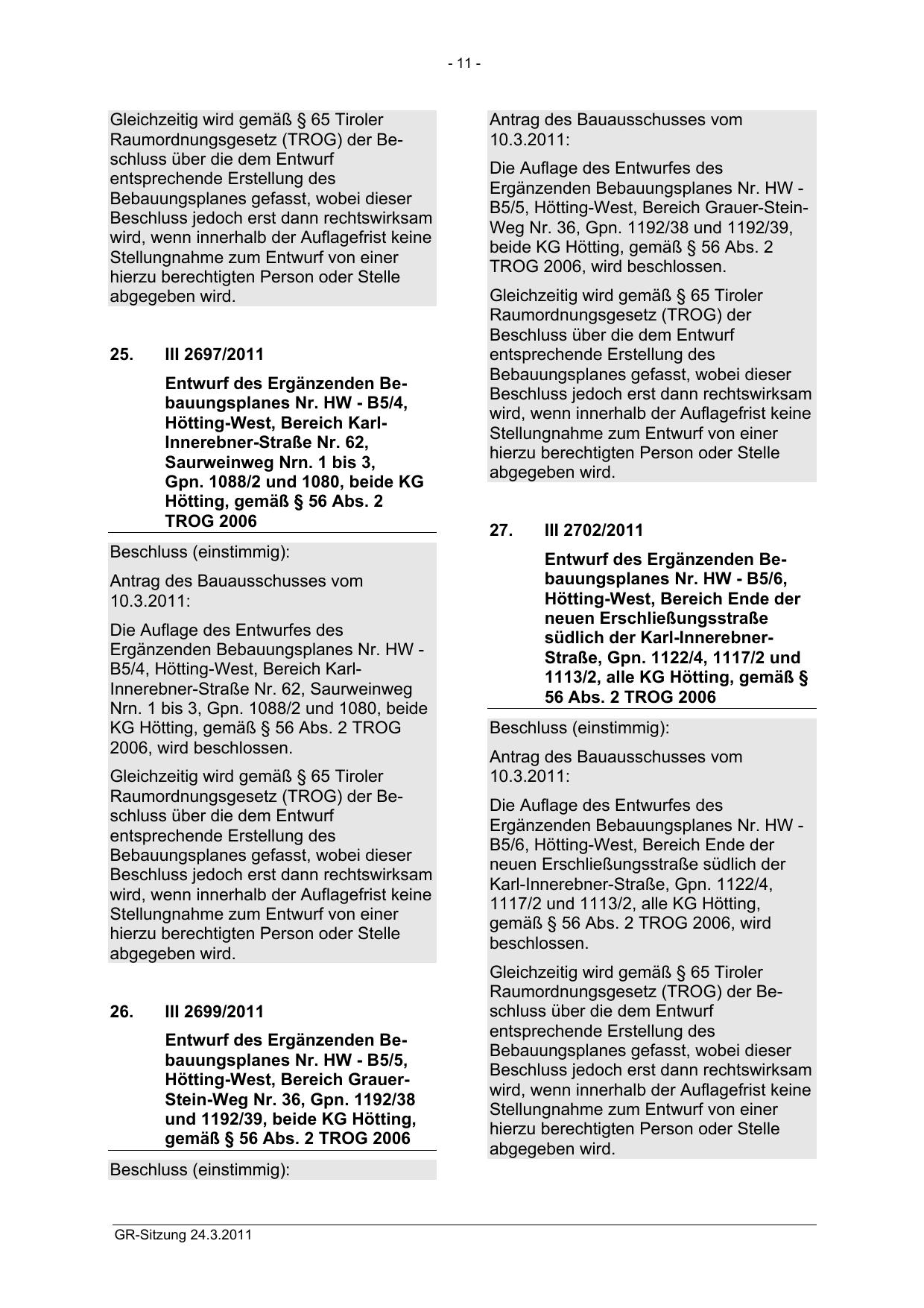 KG Hötting, gemäß § 56 Abs. 2 TROG