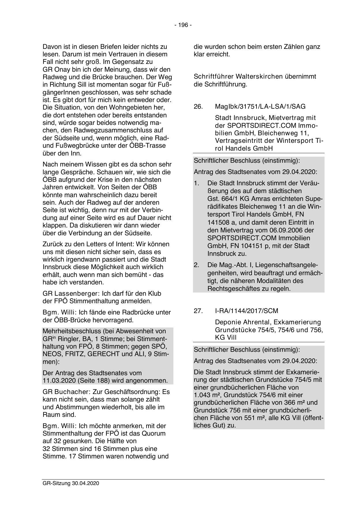 Die Stadt Innsbruck stimmt der Exkamerierung der städtischen Grundstücke 754/5 mit