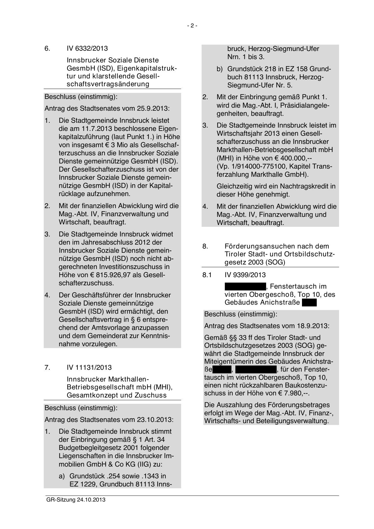 von insgesamt € 3 Mio als Gesellschafterzuschuss an die Innsbrucker Soziale