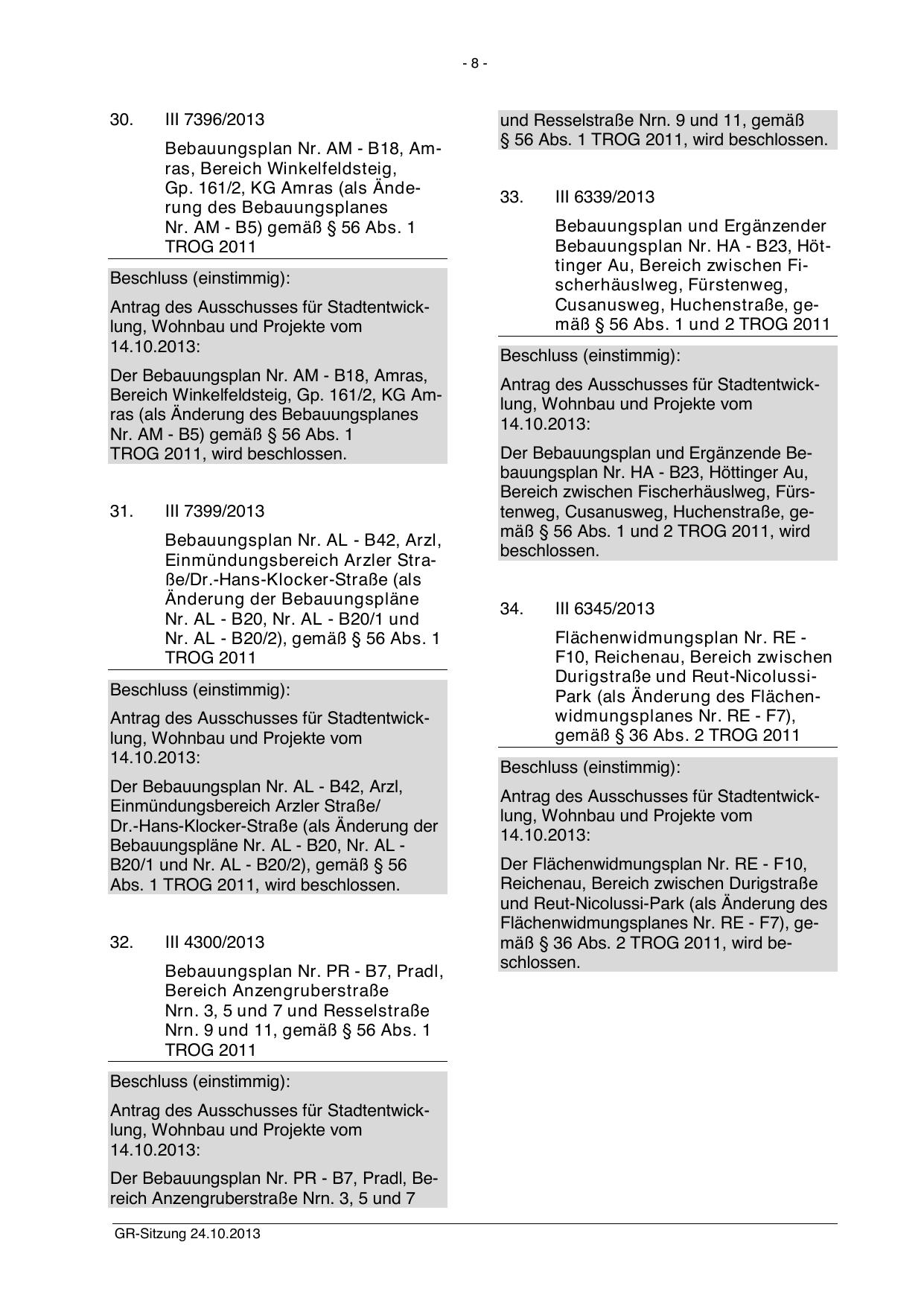 § 56 Abs. 1 TROG 2011, wird beschlossen.
