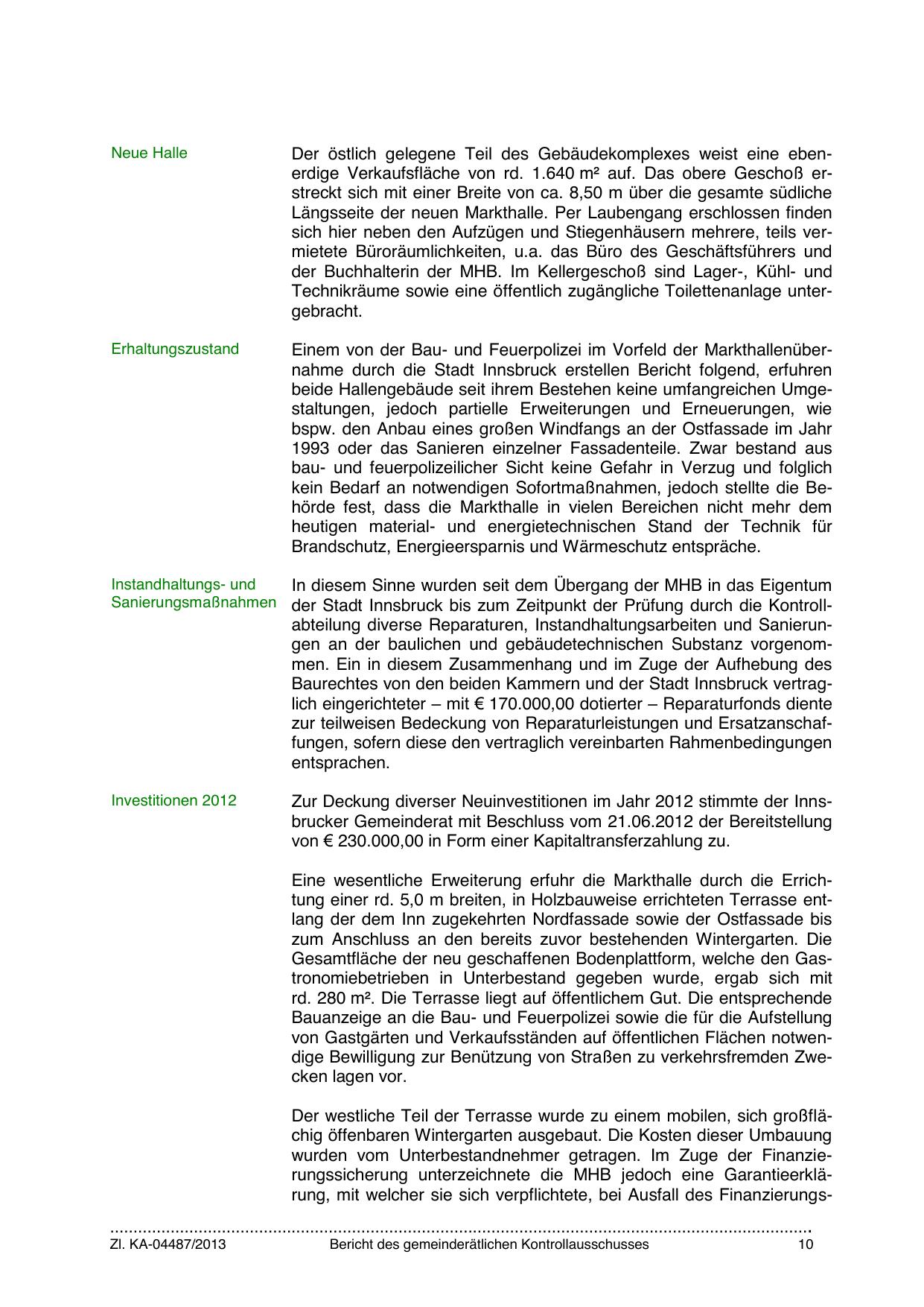 Einem von der Bau- und Feuerpolizei im Vorfeld der Markthallenübernahme durch die Stadt Innsbruck erstellen Bericht folgend, erfuhren