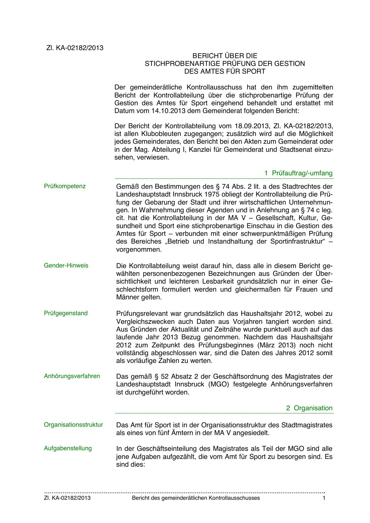 Der Bericht der Kontrollabteilung vom 18.09.2013, Zl. KA-02182/2013,