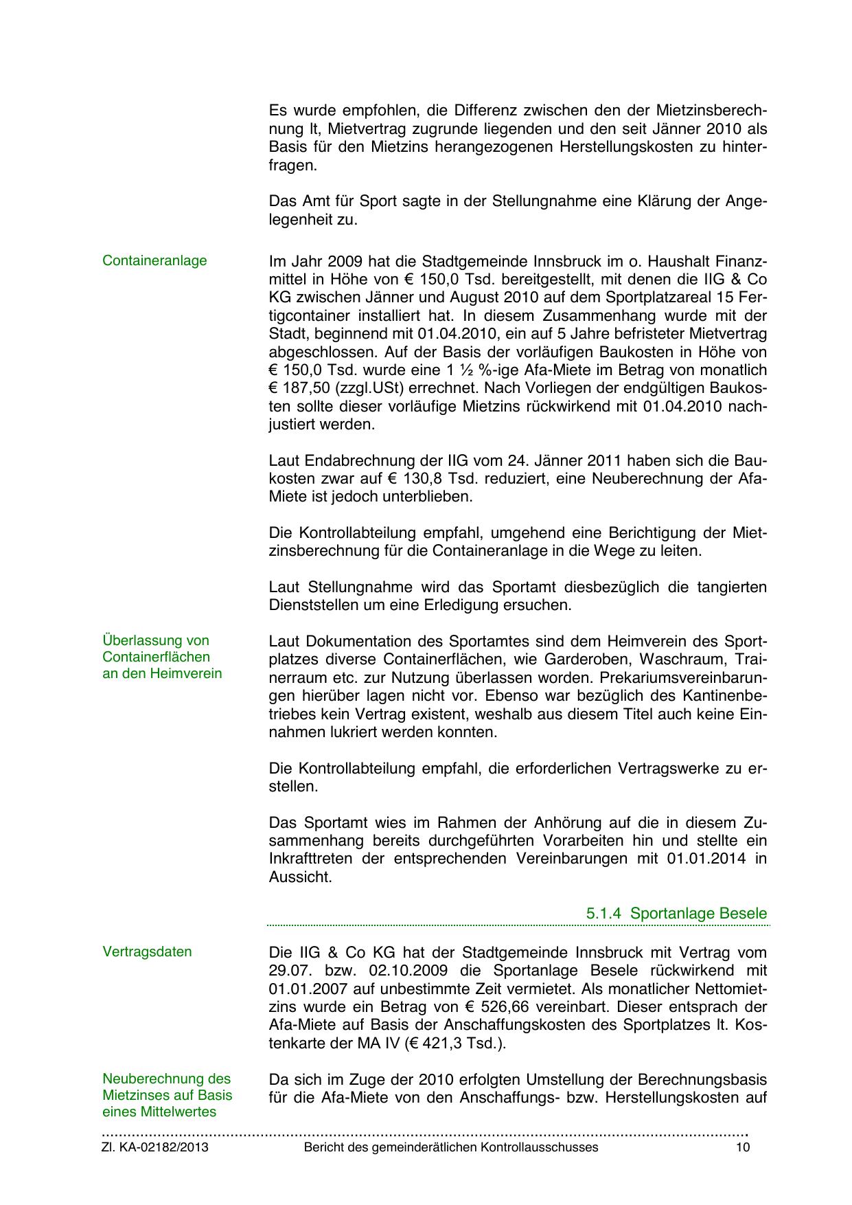 KG zwischen Jänner und August 2010 auf dem Sportplatzareal 15 Fertigcontainer installiert hat. In diesem Zusammenhang wurde mit der