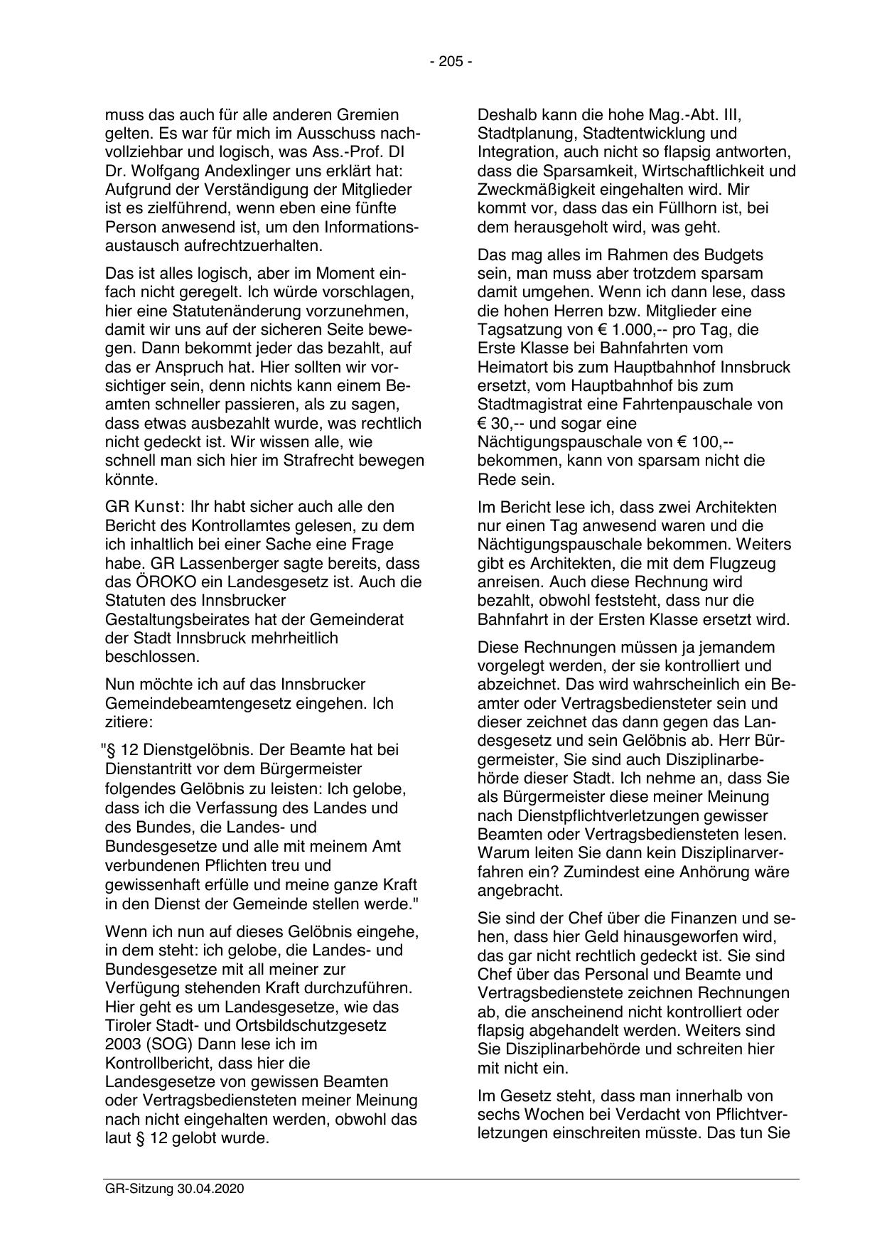 dieser zeichnet das dann gegen das Landesgesetz und sein Gelöbnis ab. Herr Bürgermeister, Sie sind auch Disziplinarbehörde dieser Stadt. Ich nehme an, dass Sie