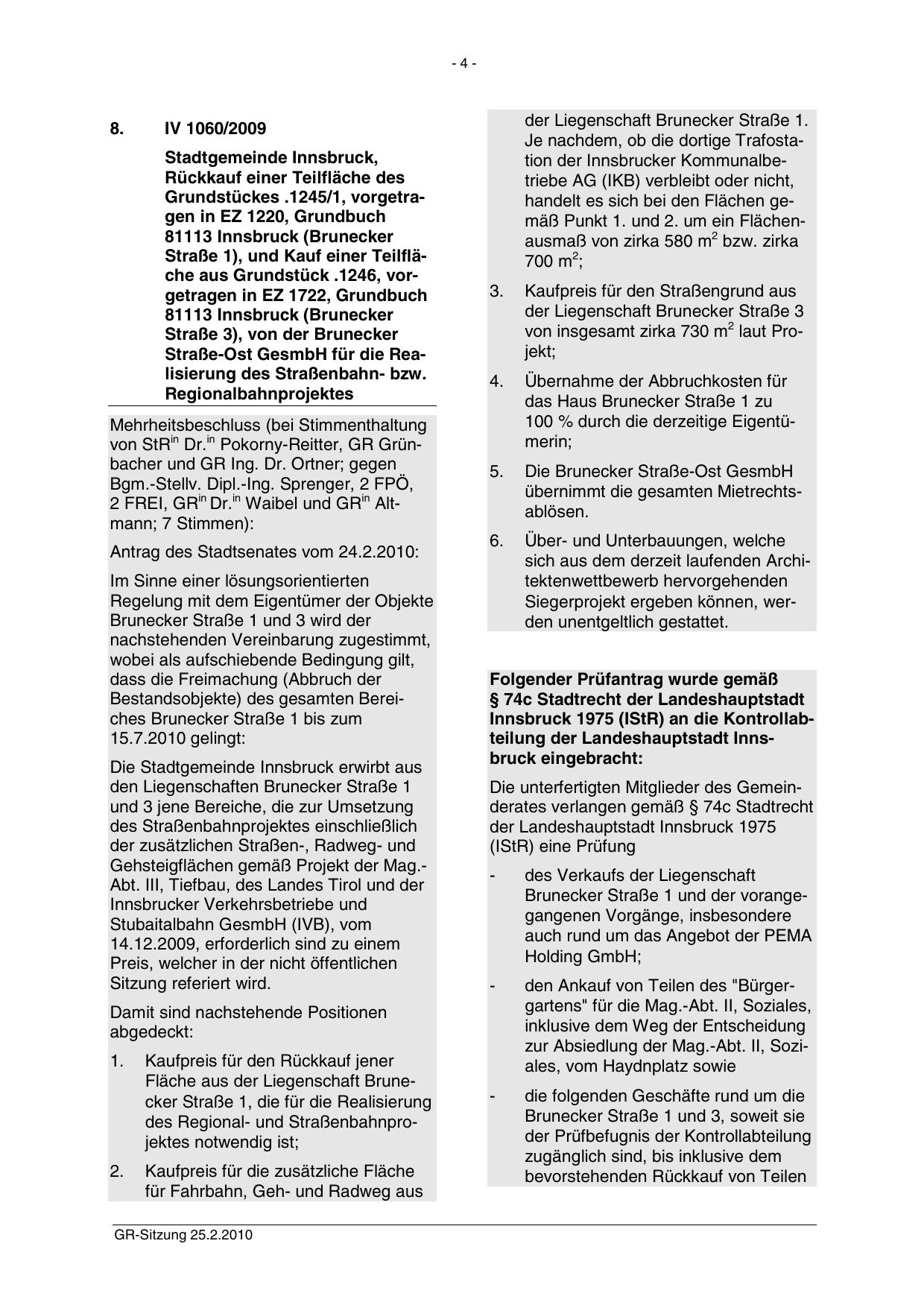 von StRin Dr.in Pokorny-Reitter, GR Grünbacher und GR Ing. Dr. Ortner; gegen