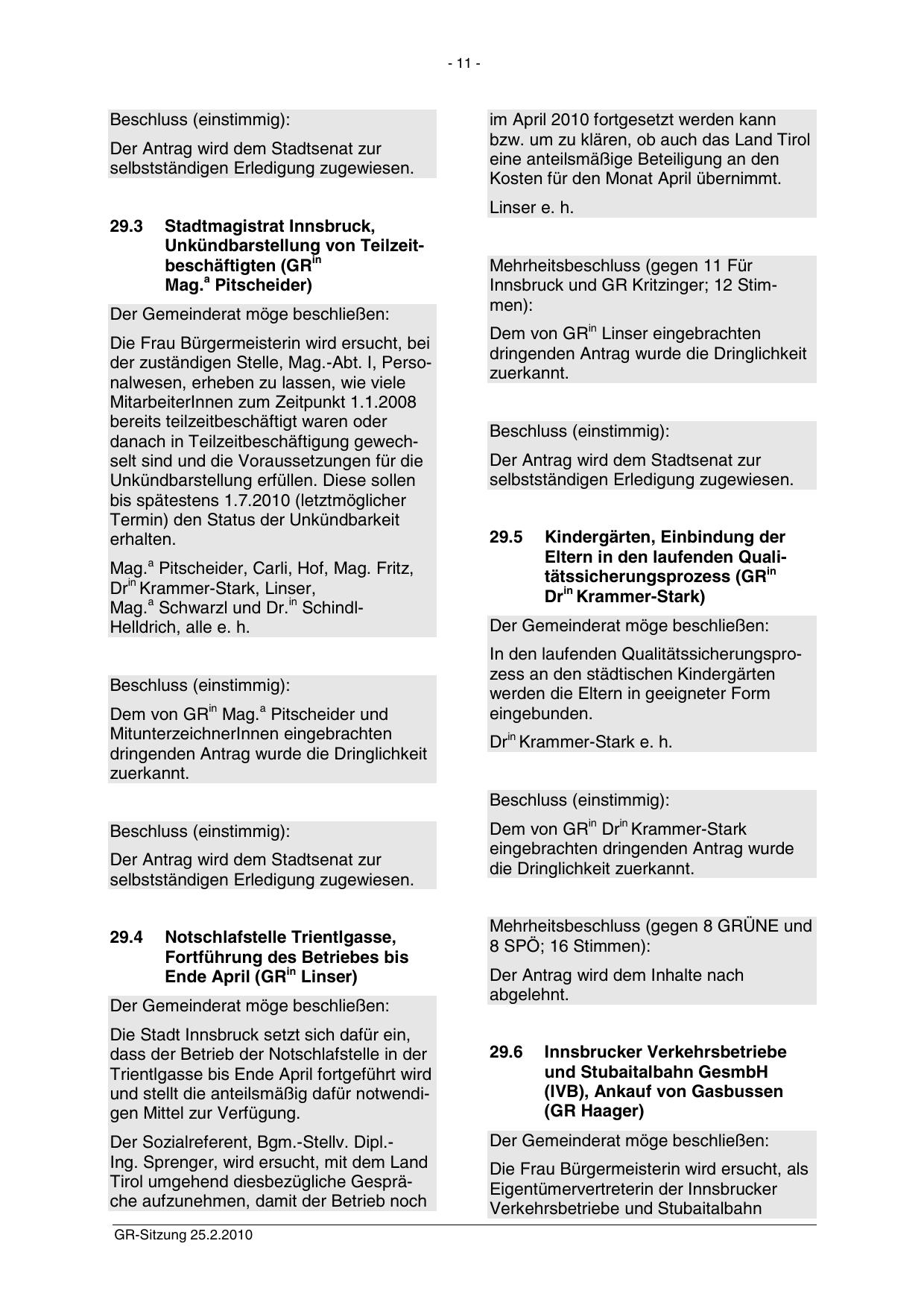 Innsbruck und GR Kritzinger; 12 Stimmen):